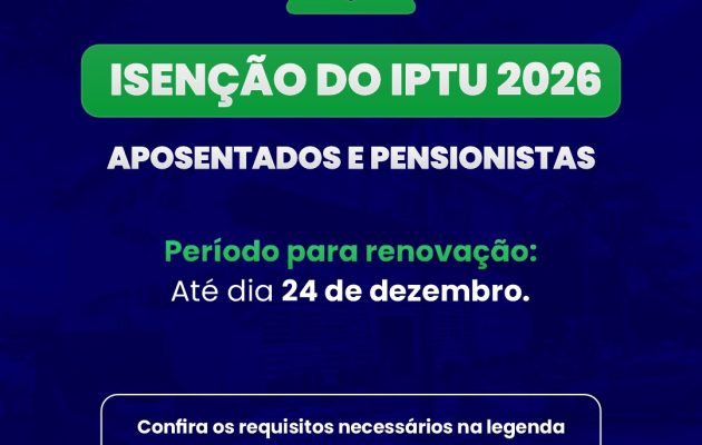 São José do Cedro abre prazo para renovação da isenção do IPTU a aposentados e pensionistas