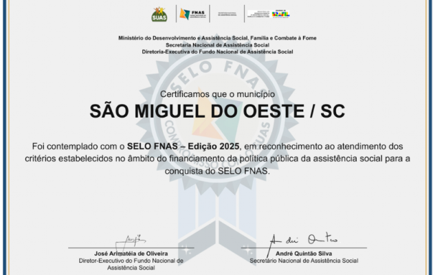 São Miguel do Oeste é reconhecido por excelência na Assistência Social com Selo FNAS 2025