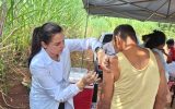 As crianças receberam atenção especial durante a ação, com pesagem e medição para acompanhamento do desenvolvimento infantil