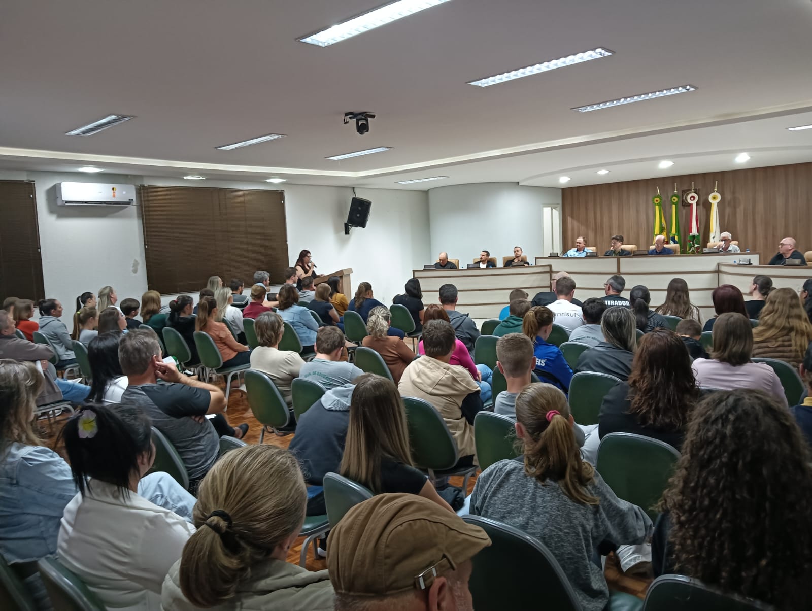 A reunião realizada na noite desta terça-feira (18), na Câmara de Vereadores de Guarujá do Sul, reuniu pais, professores e representantes da administração municipal, incluindo a prefeita Eliane Fanton e o vice-prefeito Celso Taube, para tratar da decisão de transferir alunos do 6º ao 9º ano para a escola rural. A maioria dos pais presentes se manifestou contrária à medida e apontou falta de diálogo por parte da gestão.