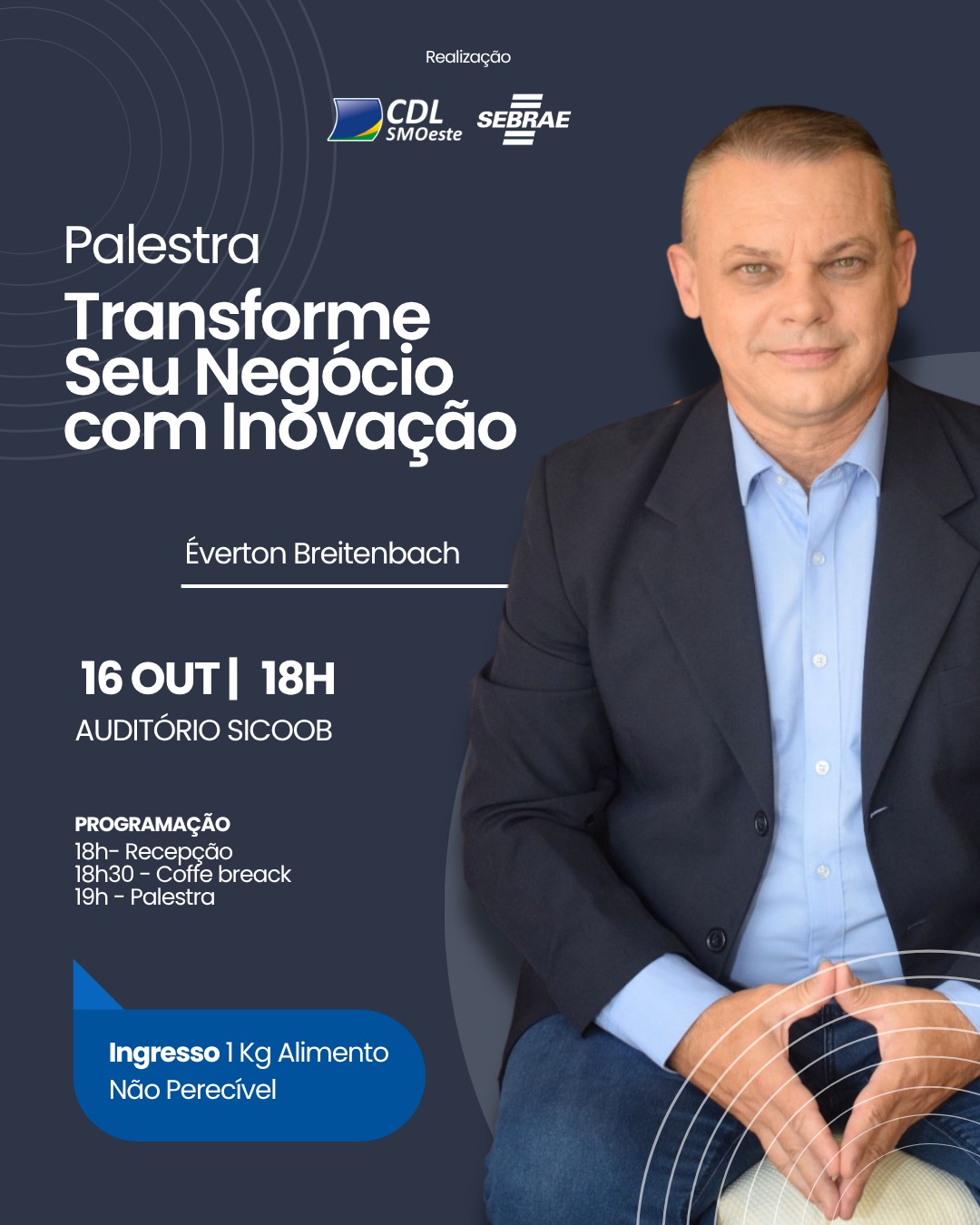 A recepção começa às 18h, seguida de um coffee break de relacionamento às 18h30, e, às 19h, inicia-se a palestra com Éverton Breitenbach, engenheiro mecânico com doutorado e mestrado em Ciências dos Materiais (UDESC). Com ampla experiência como docente em instituições como Unochapecó, Univille, UFSC e UDESC, e passagens por grandes empresas como Franke e Multibrás, Éverton é consultor da Gen-Z Educação e sócio-fundador da OnMec Consultoria e Treinamentos. Ele traz uma abordagem clara e inspiradora sobre como aplicar a inovação nos processos das empresas, mostrando que inovar vai muito além de tecnologia — é uma mudança de mentalidade e estratégia.