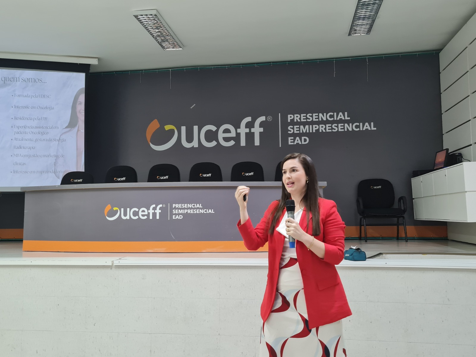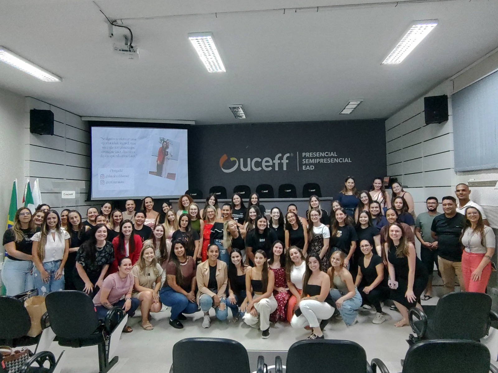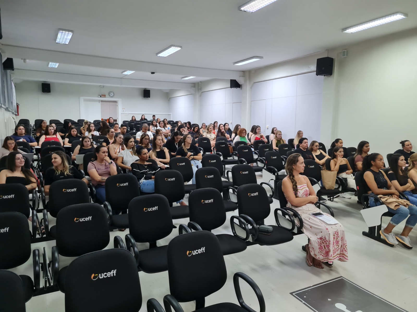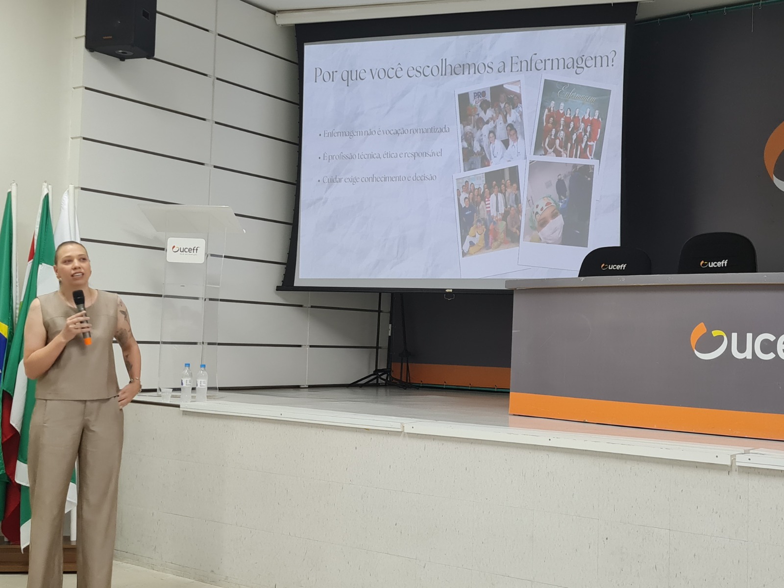 Durante a palestra, que ocorreu no auditório da UCEFF do Santa Maria, os alunos tiveram a oportunidade de conhecer sobre a trajetória das palestrantes no ramo da enfermagem e o que elas aprenderam ao longo desses anos.