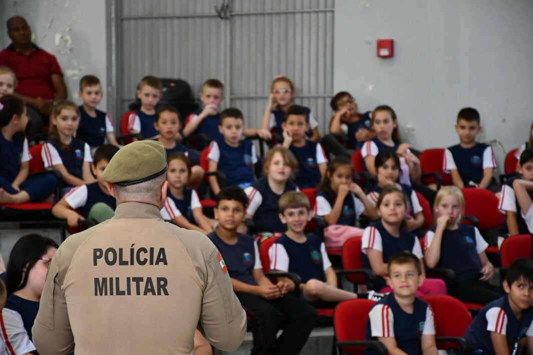 Última atualização: 2025/12/10 11:39:38Na última sexta-feira, o Centro de Multiplouso Armando Domingos Montagna recebeu uma palestra educativa sobre Meio Ambiente, promovida pela Polícia Militar em parceria com o Ministério Público de Santa Catarina. A atividade foi conduzida pelo Promotor de Justiça Felipe Bruggmann e pelo Sargento Mezzadri, que compartilharam orientações e conhecimentos com os alunos de maneira leve e bastante dinâmica.