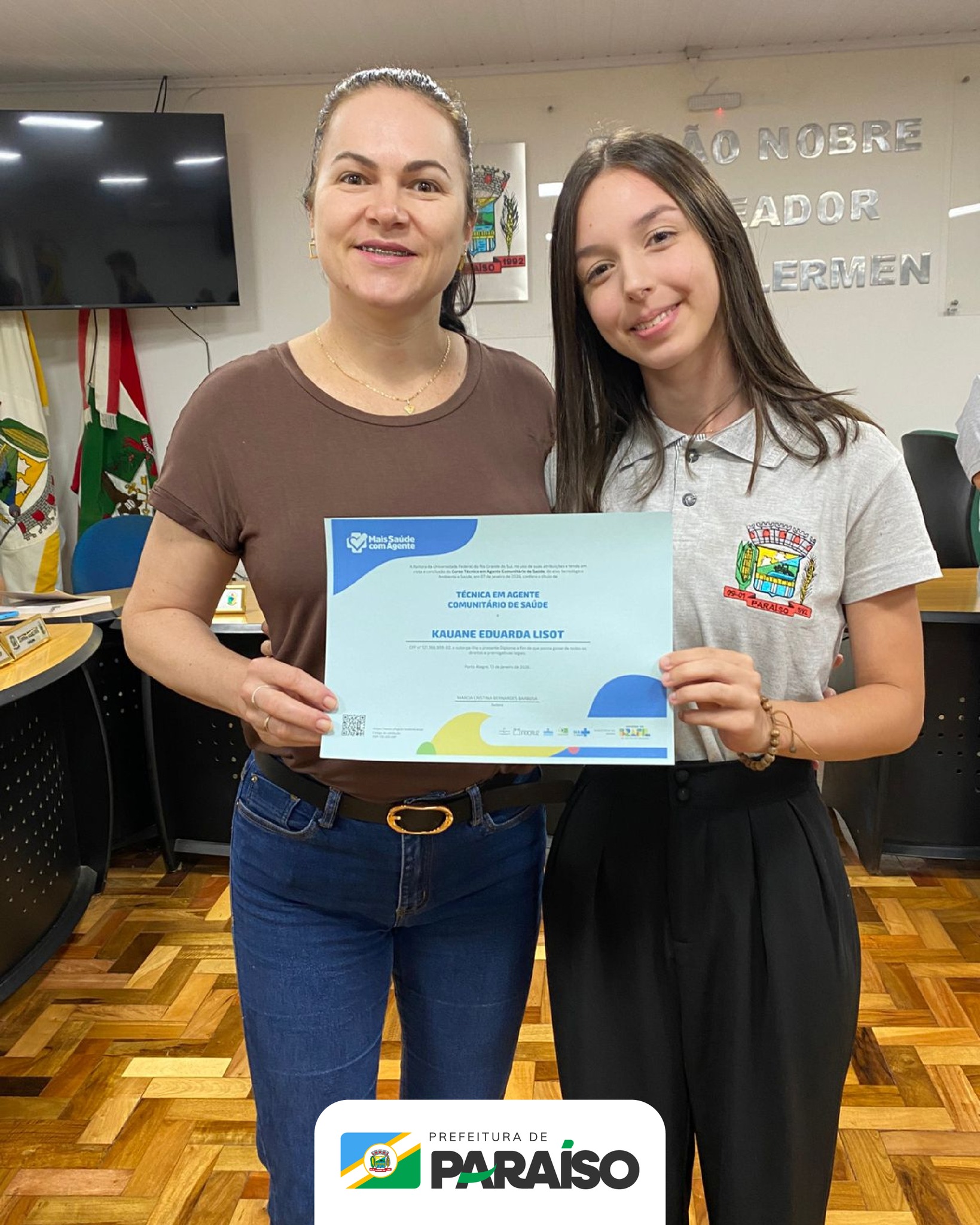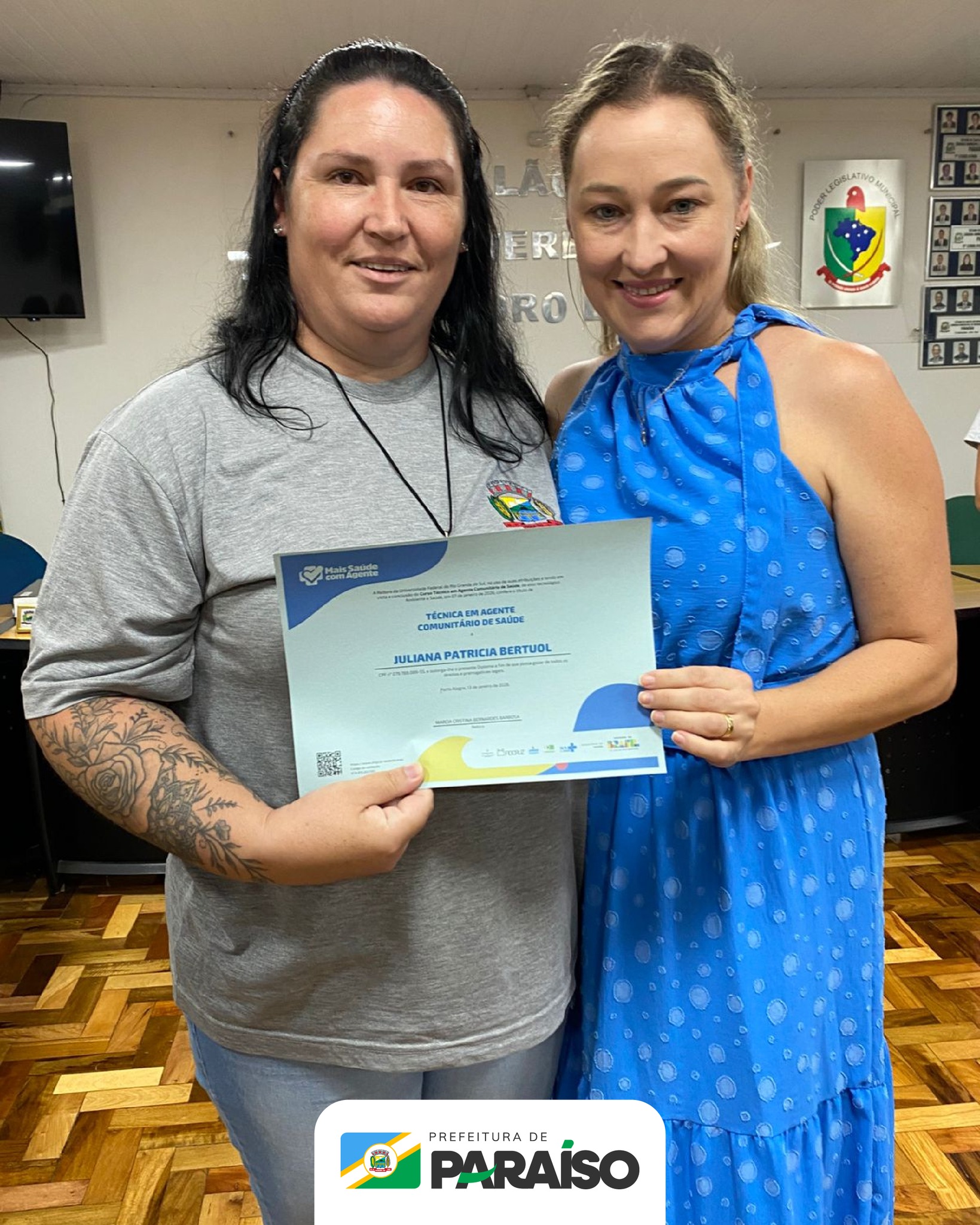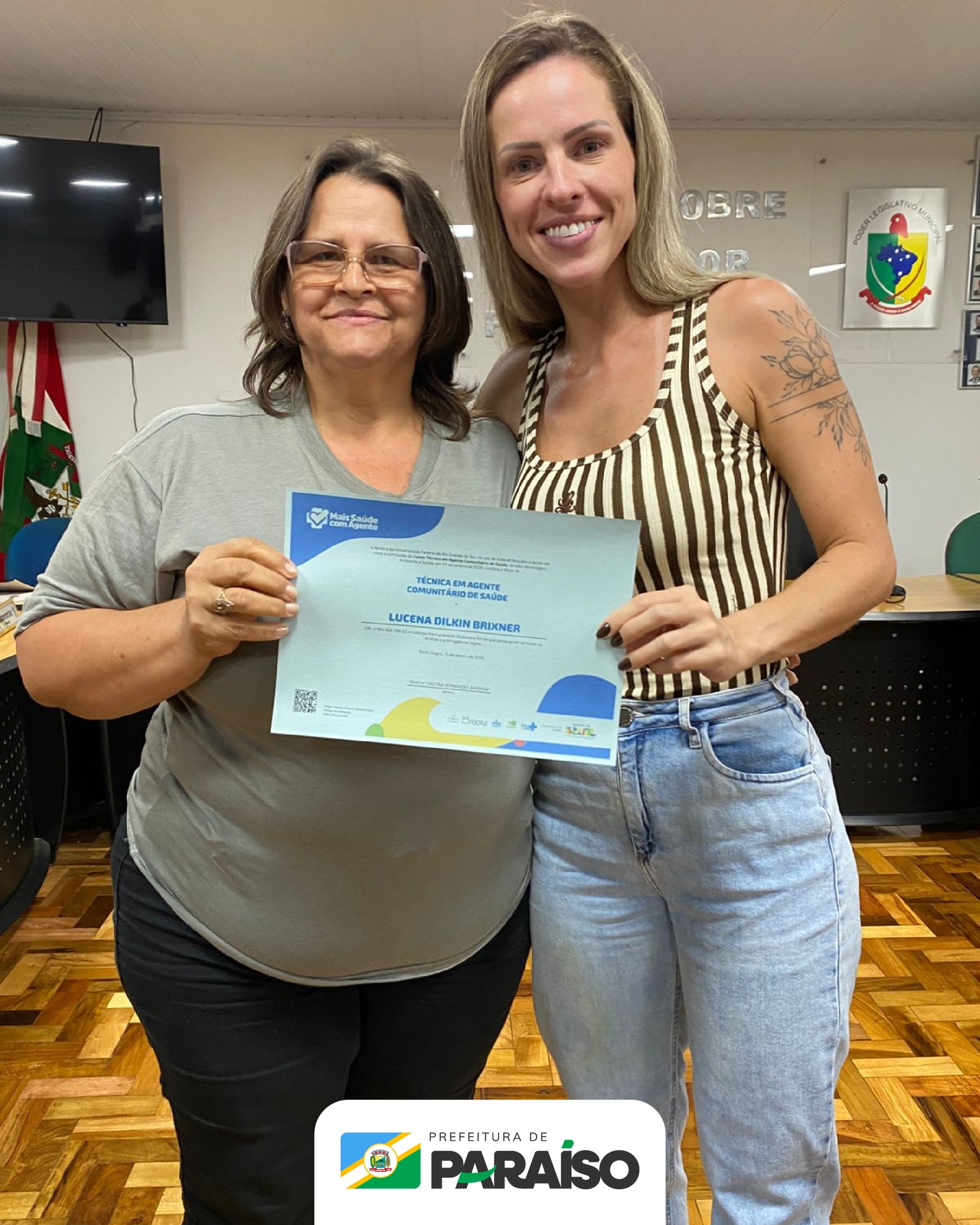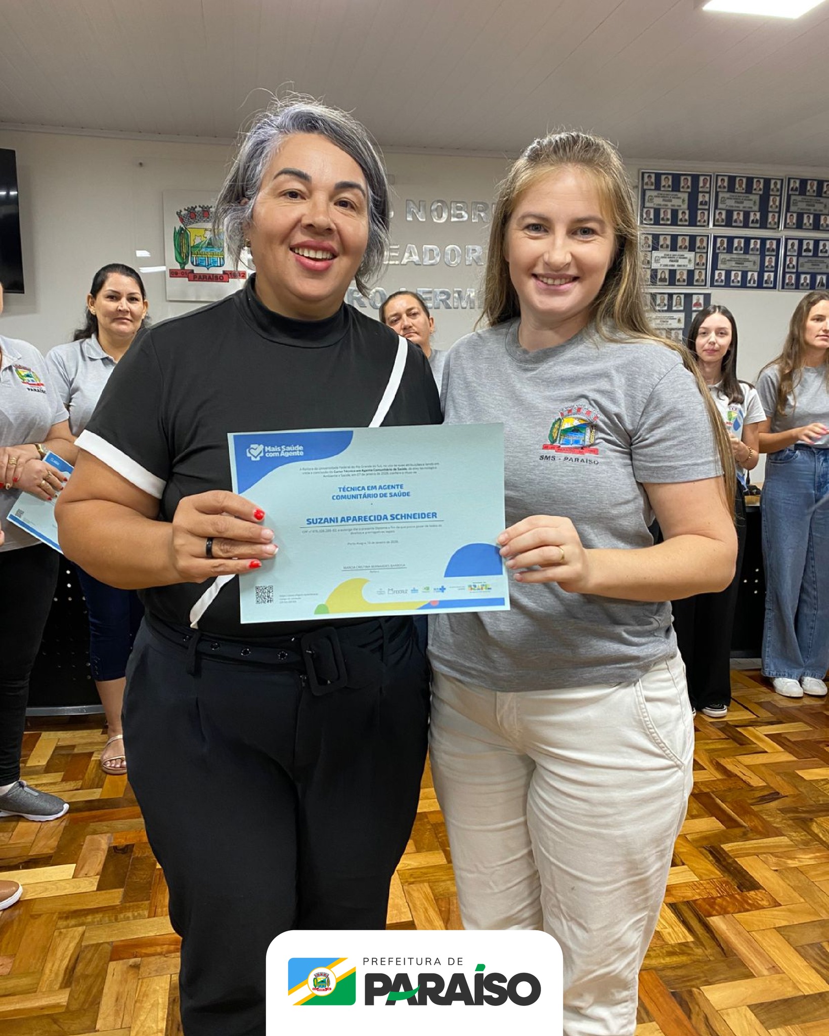 O Município de Paraíso realizou nesta última sexta-feira (20/02) a formatura dos Agentes Comunitários de Saúde (ACS) e Agentes de Combate às Endemias (ACE) concluintes do Programa Mais Saúde com Agente, instituído pelo Ministério da Saúde por meio da Portaria GM/MS nº 2.304/2023, desenvolvido em parceria com o Conselho Nacional de Secretarias Municipais de Saúde (CONASEMS) e a Universidade Federal do Rio Grande do Sul (UFRGS).