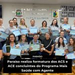 Última atualização: 2026/02/26 1:51:15O Município de Paraíso realizou nesta última sexta-feira (20/02) a formatura dos Agentes Comunitários de Saúde (ACS) e Agentes de Combate às Endemias (ACE) concluintes do Programa Mais Saúde com Agente, instituído pelo Ministério da Saúde por meio da Portaria GM/MS nº 2.304/2023, desenvolvido em parceria com o Conselho Nacional de Secretarias Municipais de Saúde (CONASEMS) e a Universidade Federal do Rio Grande do Sul (UFRGS).