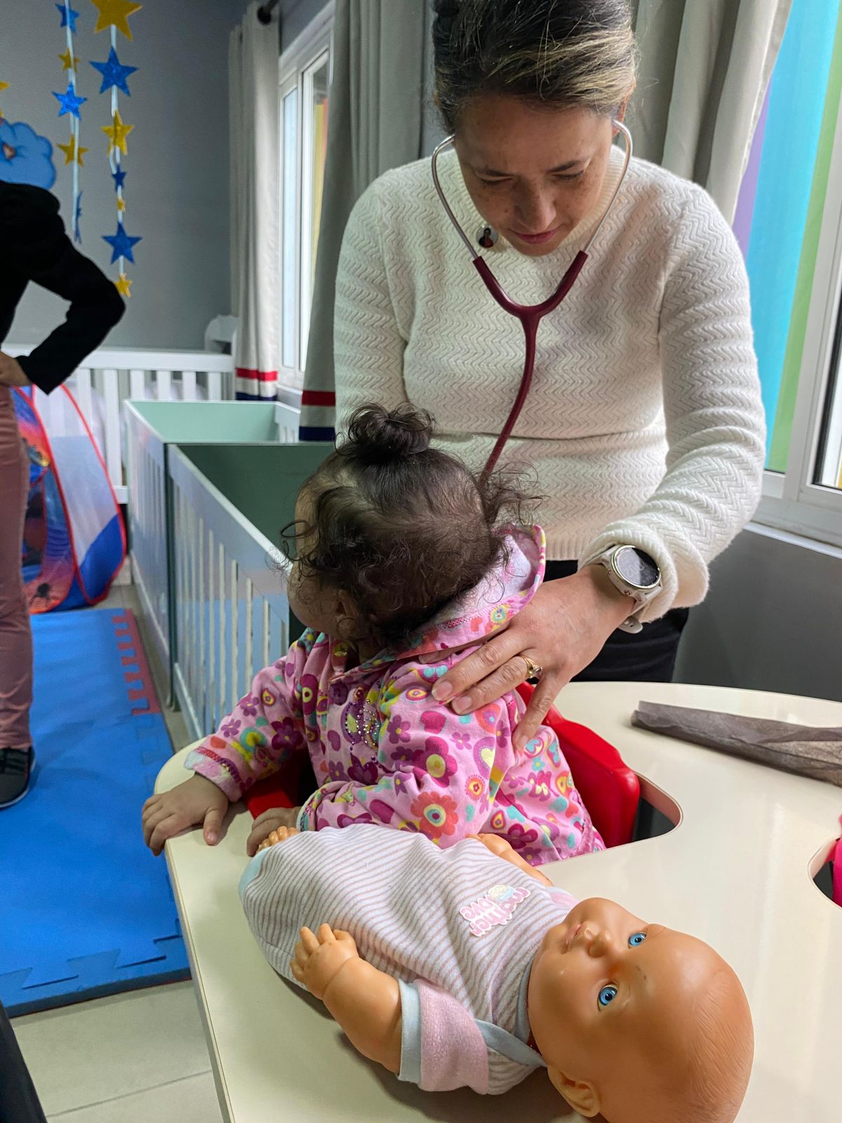 Segundo ela, nas quartas-feiras, a Dra. Verusca do Nascimento, especialista em pediatria, realizará visitas nas creches para os atendimentos, com foco especial na escuta do pulmão, devido ao aumento de casos de gripe e suas possíveis complicações nesta época do ano.