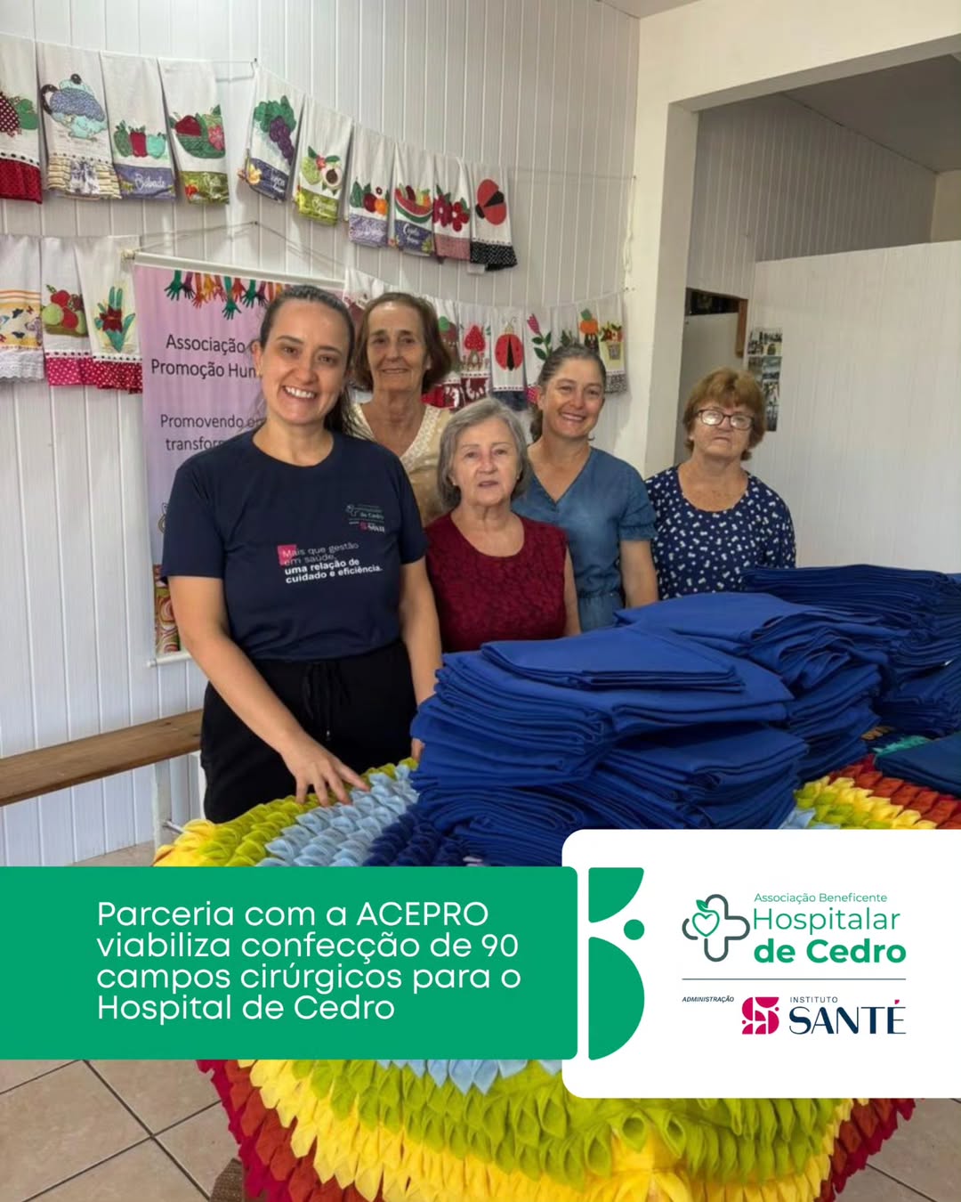 A ACEPRO produziu, de forma voluntária e sem custos, 90 campos cirúrgicos para a instituição, contribuindo diretamente para mais segurança nos procedimentos e melhor qualidade no atendimento aos pacientes.