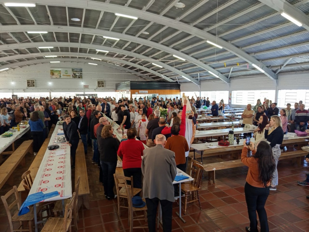 O almoço, servido ao meio-dia, contou com frangos recheados, churrascos de gado e suíno e acompanhamentos preparados pela comunidade. De acordo com o coordenador do conselho paroquial, Ivo Pomiecinski, foram comercializados mais de mil quilos de carne. Ele destacou que a maioria dos participantes almoçou no local, enquanto outros optaram por levar as refeições para casa.