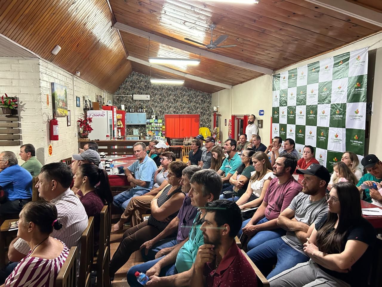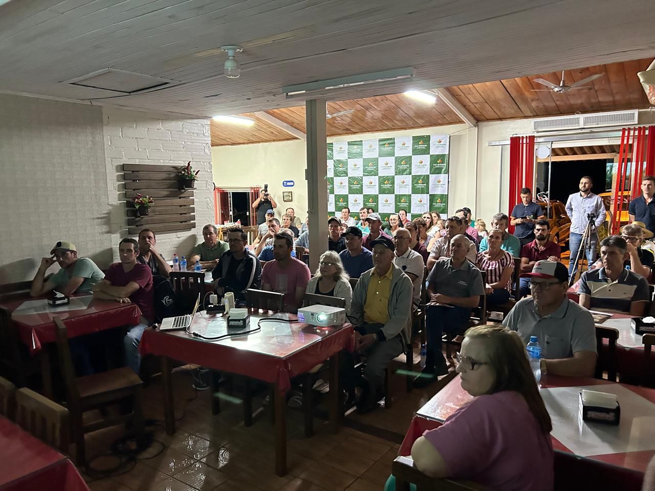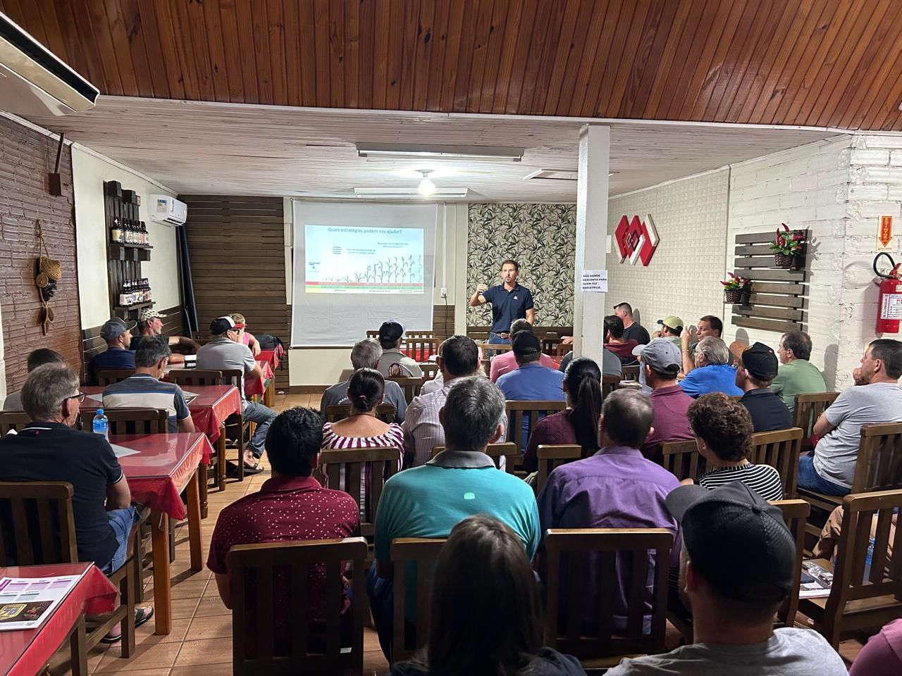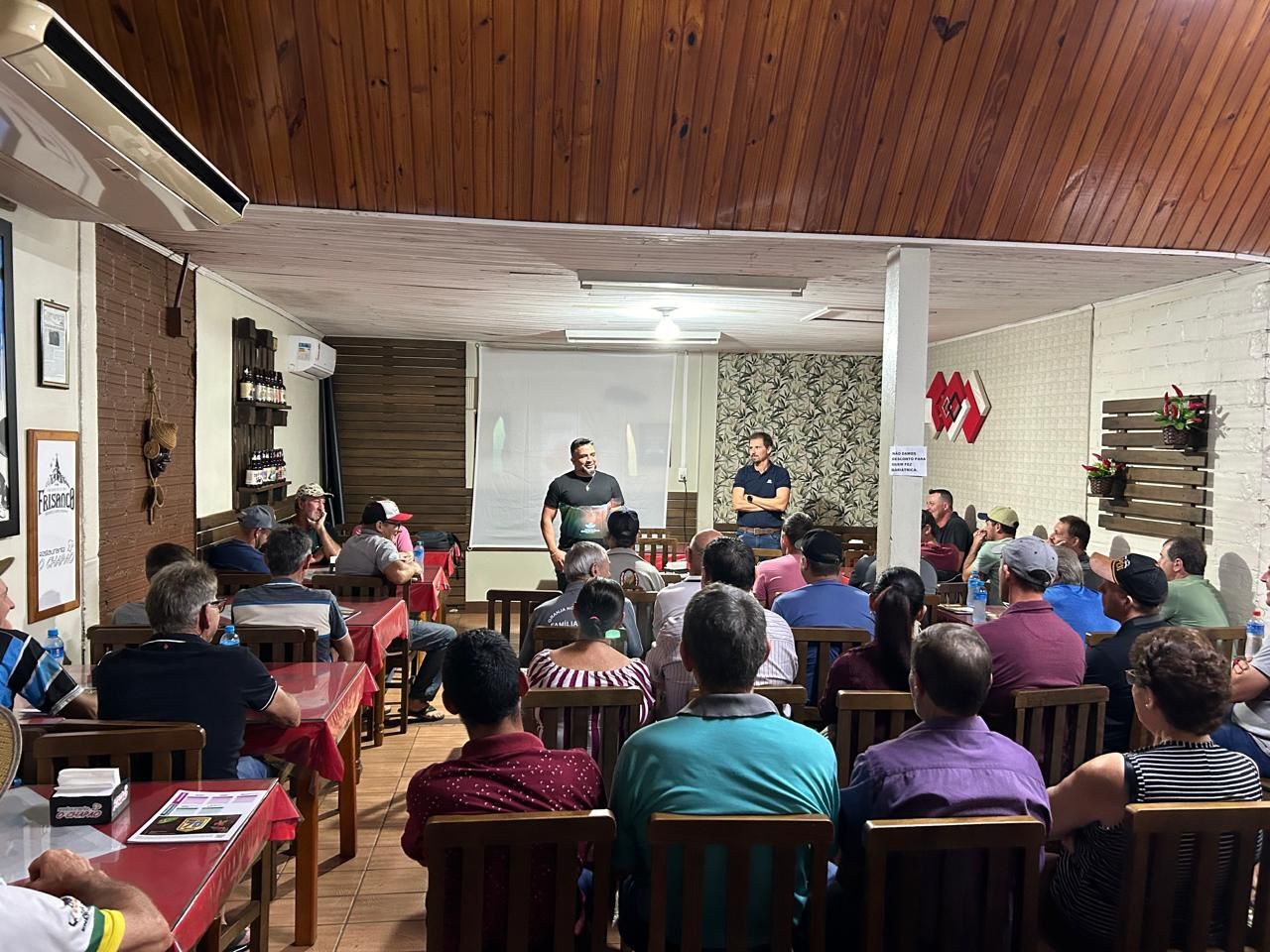 Última atualização: 2024/06/17 9:59:09Na noite de 13 de junho, foi realizado um encontro com aproximadamente 40 produtores que participaram ativamente do Barter de trigo com a empresa Pedra Brilhante. Sob a organização e condução do Departamento Técnico e Comercial da Pedra Brilhante, o evento teve como objetivo principal posicionar de maneira estratégica o portfólio da Nortox, também parceira da empresa.