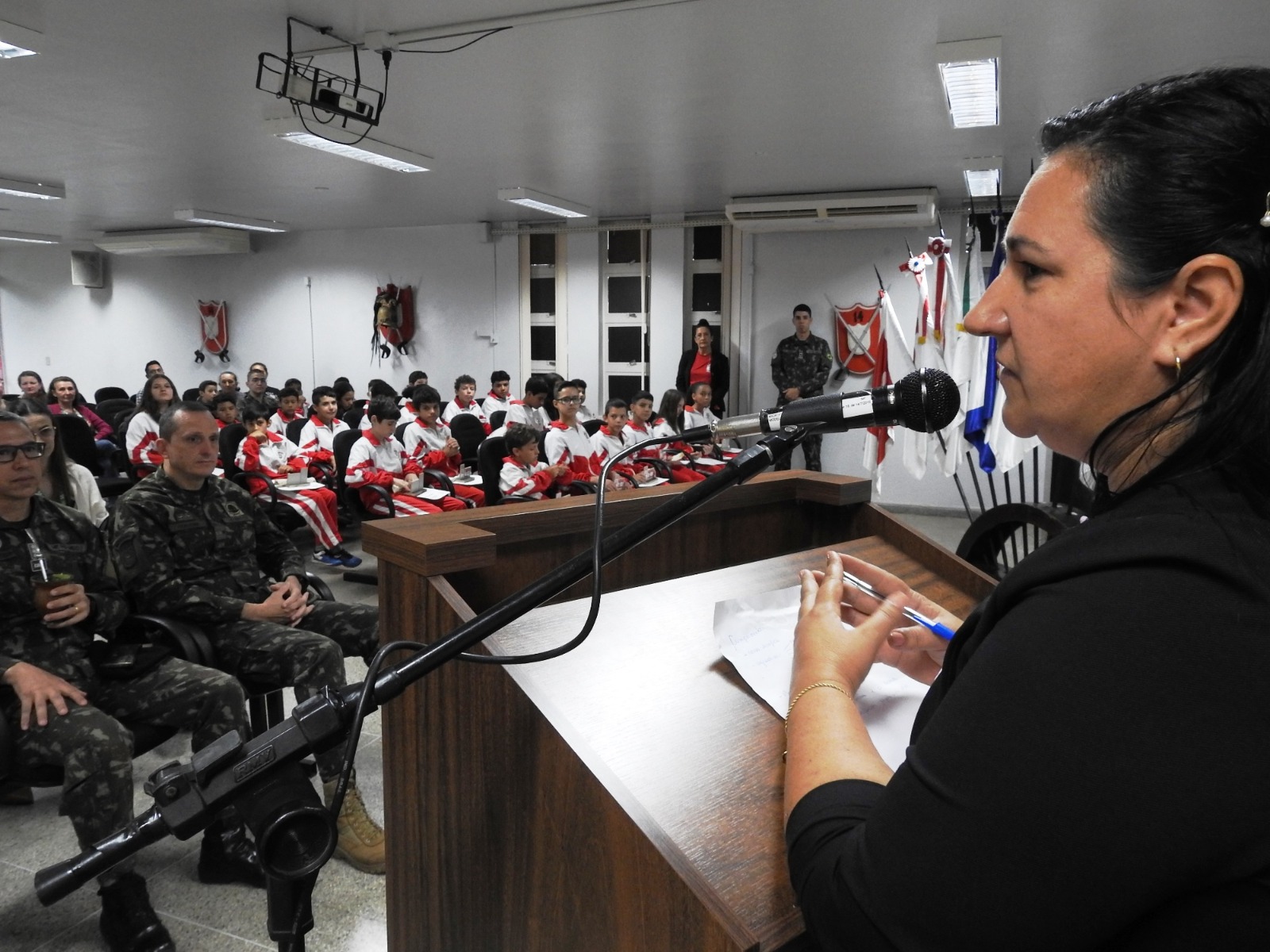 Andreia, durante seu discurso emocionado, parabenizou e agradeceu toda equipe que esteve envolvida nas atividades do programa neste ano, em especial ao comando do Exército que é sempre um grande parceiro.