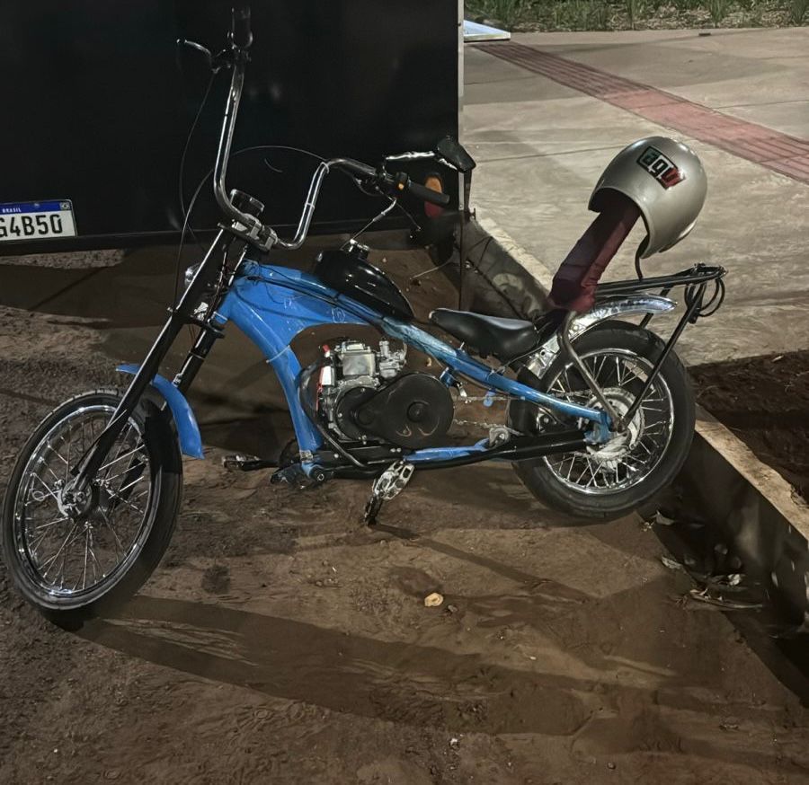 Ainda no sábado, por volta das 20h, uma bicicleta motorizada foi flagrada circulando na pista de atletismo da praça Belarmino Annoni. O veículo, equipado com motor a combustão, era conduzido por outro menor de idade. Após a abordagem, a bicicleta foi recolhida e encaminhada ao pátio.