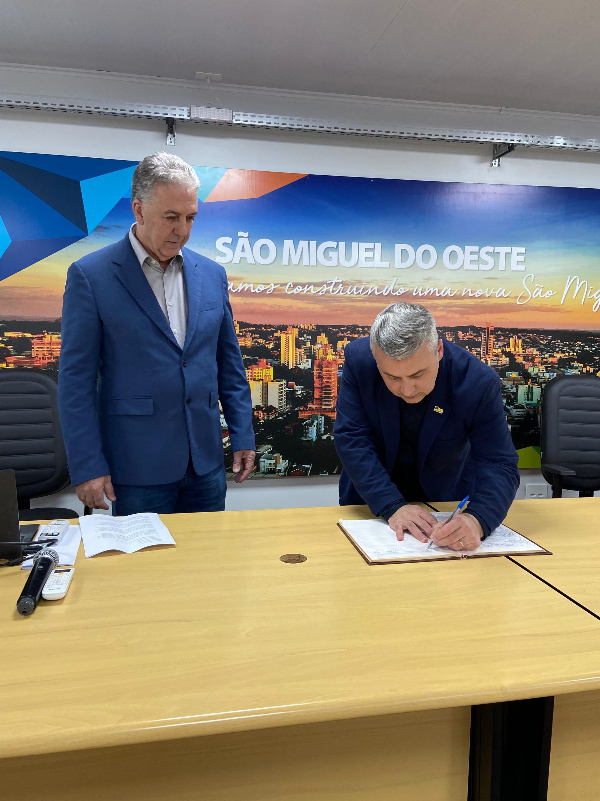 Última atualização: 2025/07/24 5:15:56O prefeito de São Miguel do Oeste, Edenilson Zanardi, transmitiu o cargo ao vice-prefeito Carlos Agostini nesta quinta-feira (24). Nos próximos 10 dias, o comando da Administração Municipal estará sob a responsabilidade de Agostini.