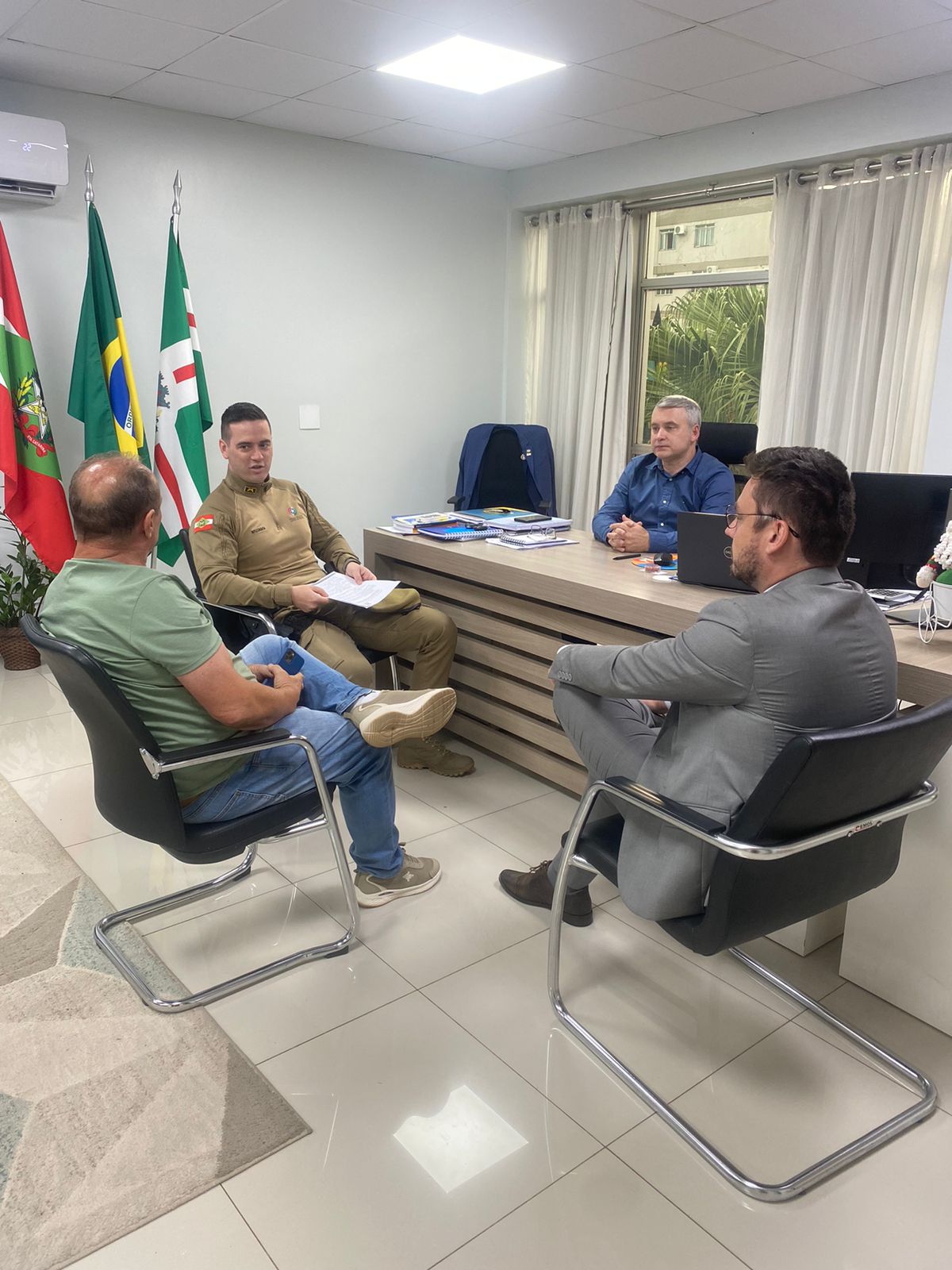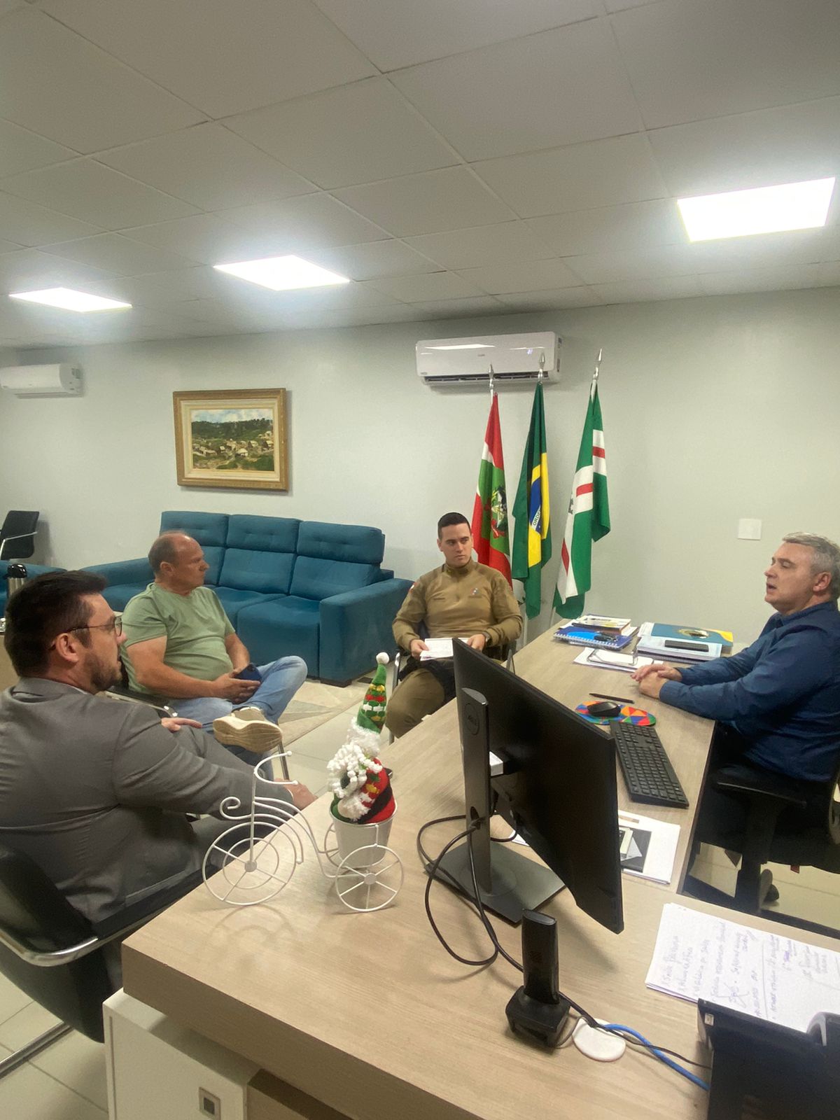 Última atualização: 2025/12/16 1:52:39Na tarde desta segunda-feira (15), o prefeito de São Miguel do Oeste, Edenilson Zanardi, reuniu-se com o subcomandante do 11º Batalhão de Polícia Militar de Fronteira (11º BPM/Fron), capitão Lucas Brugnara Soccal, o procurador do município, Vinicius Pelissari, e o secretário de Urbanismo, Nilo Bedin. O encontro teve como pauta a legislação relacionada ao consumo de bebidas alcoólicas em espaços públicos.