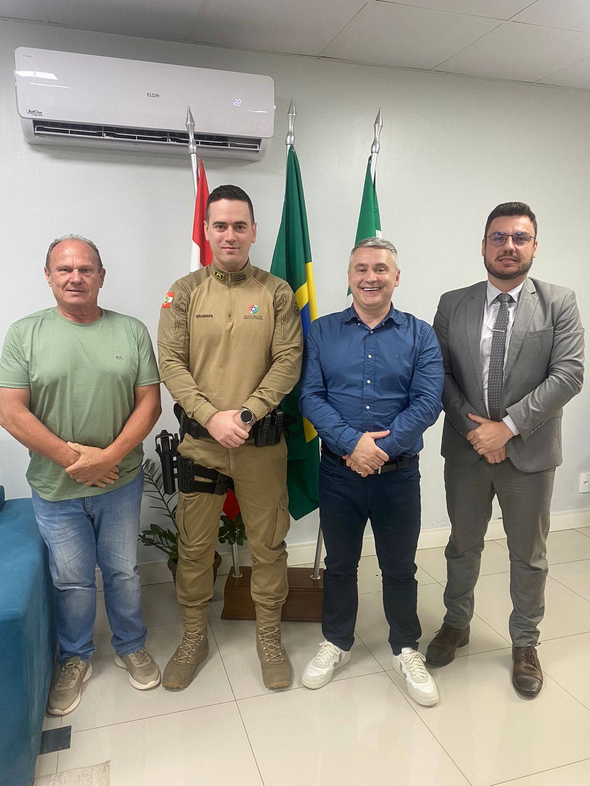 Na tarde desta segunda-feira (15), o prefeito de São Miguel do Oeste, Edenilson Zanardi, reuniu-se com o subcomandante do 11º Batalhão de Polícia Militar de Fronteira (11º BPM/Fron), capitão Lucas Brugnara Soccal, o procurador do município, Vinicius Pelissari, e o secretário de Urbanismo, Nilo Bedin. O encontro teve como pauta a legislação relacionada ao consumo de bebidas alcoólicas em espaços públicos.