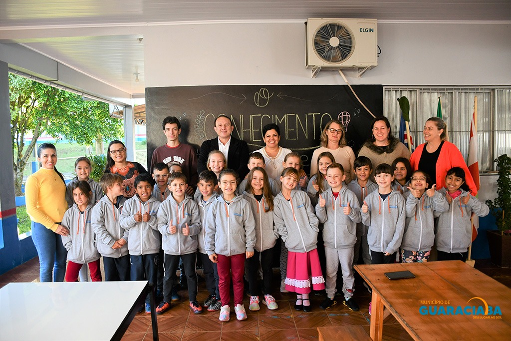 A secretaria de Educação, Cultura e Esporte de Guaraciaba realizou nesta quinta-feira (01) a entrega de agasalhos para todos os alunos das escolas municipais e municipalizadas, da creche ao 9º ano. Estiveram presentes na entrega oficial a secretária Sandra Gasperin, o prefeito Vandecir Dorigon, equipe de educação e imprensa.