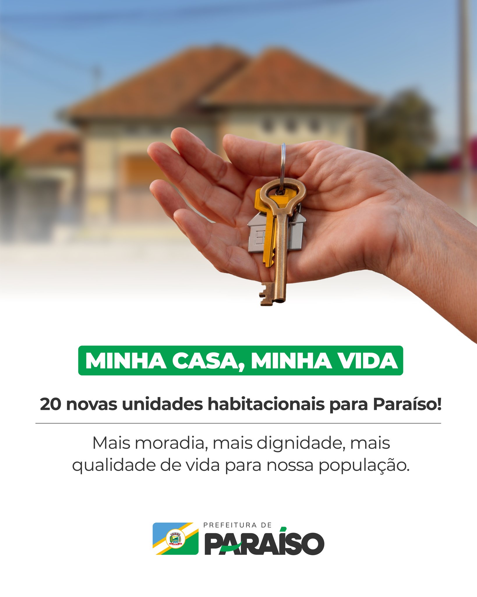 Última atualização: 2025/08/11 3:45:22A Prefeitura de Paraíso celebra a conquista de 20 novas unidades habitacionais do programa Minha Casa, Minha Vida, que serão destinadas a famílias do município.