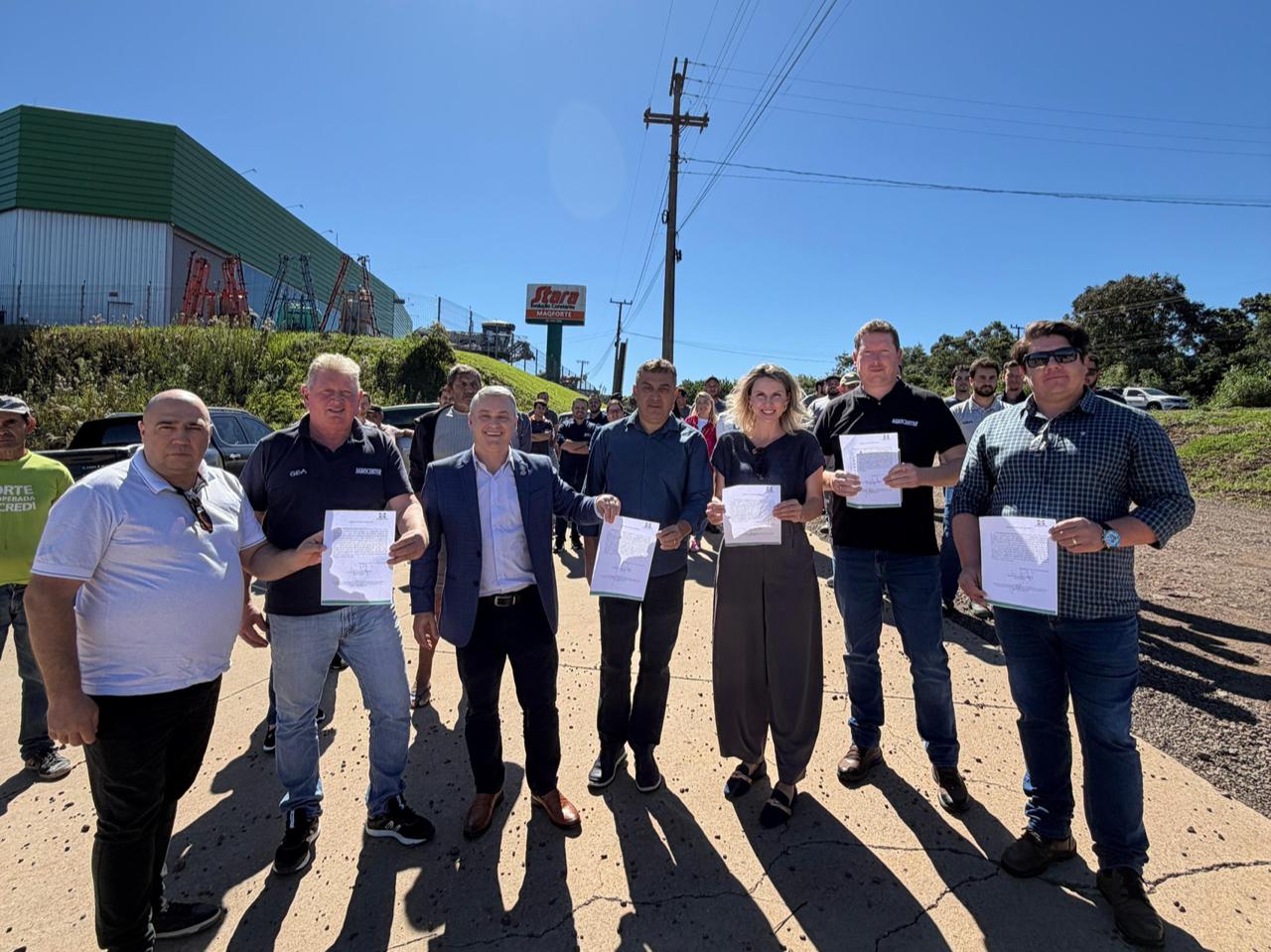 Última atualização: 2026/04/27 4:28:56A Prefeitura de São Miguel do Oeste deu mais um passo importante para o fortalecimento da infraestrutura urbana do município. Na tarde desta segunda-feira (27), foi assinada a ordem de serviço para a execução da pavimentação asfáltica da estrada marginal à BR-163, na região da Linha Três Curvas.