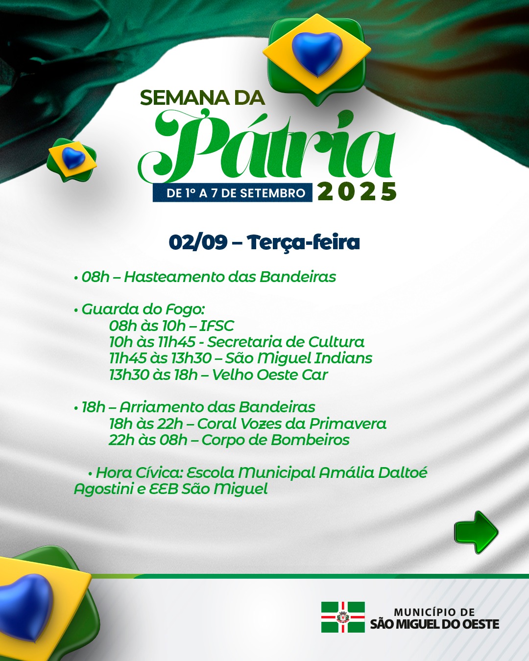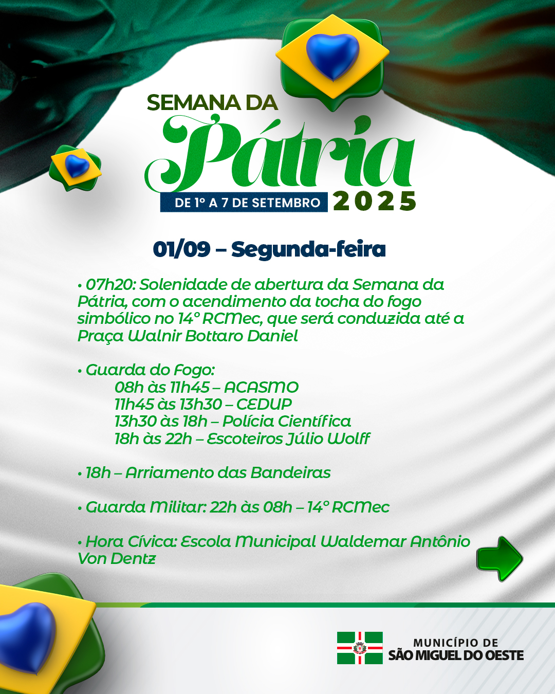 Home Prefeitura de São Miguel do Oeste divulga programação da Semana da Pátria 2025