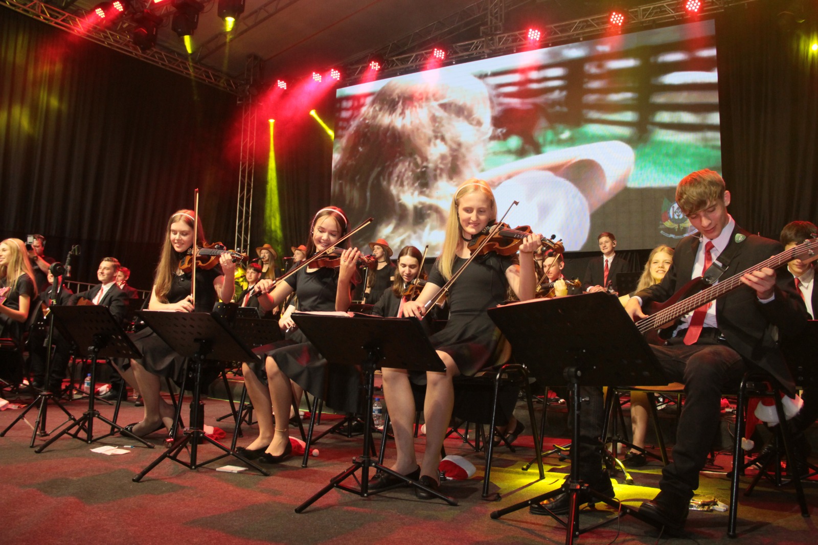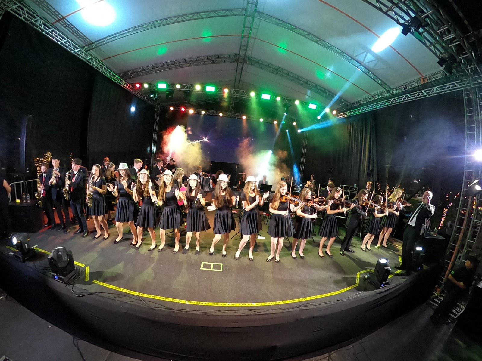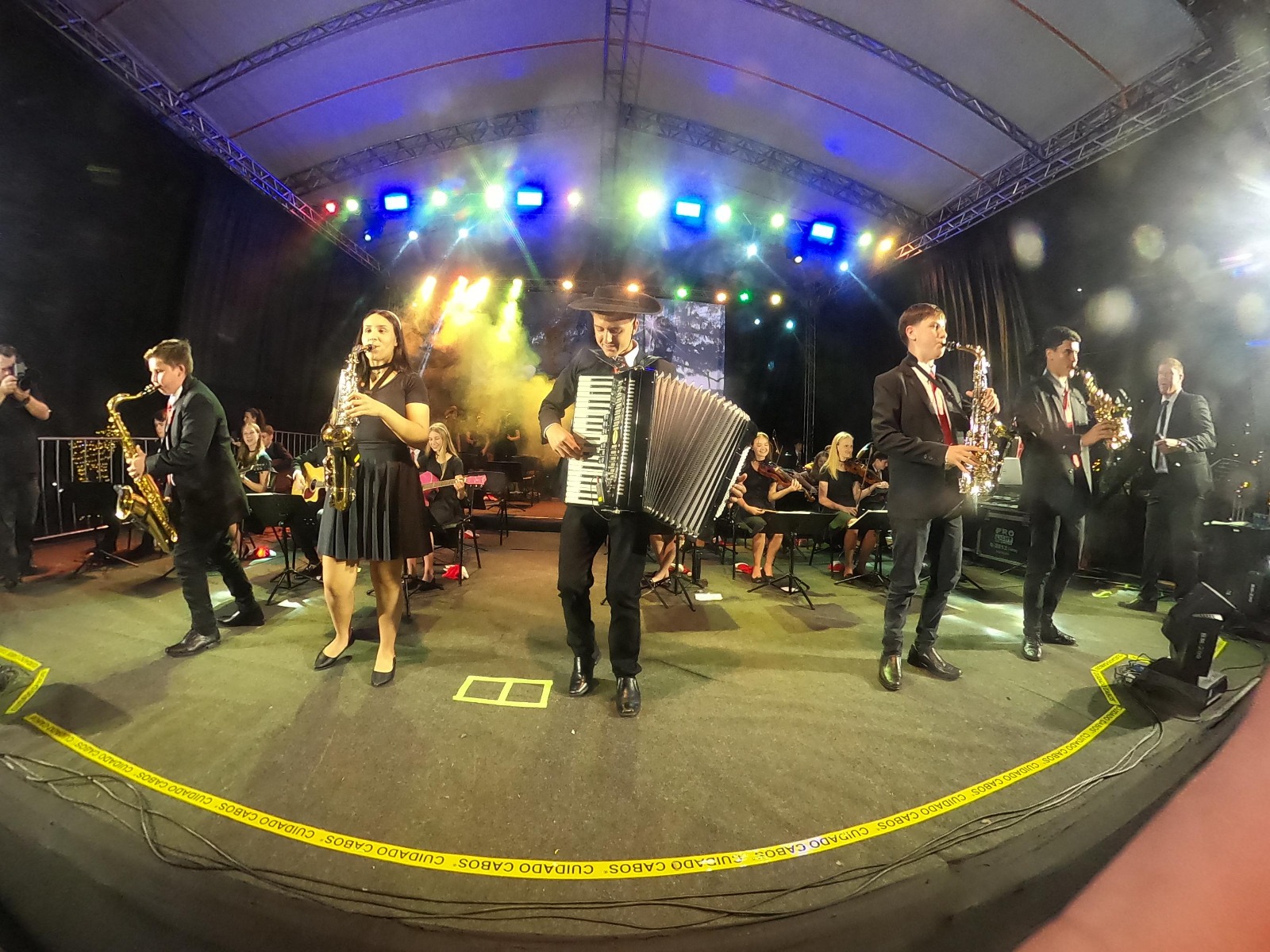 A chegada do Papai Noel, o acendimento das luzes e a apresentação da Orquestra de Itapiranga, foram os pontos altos da noite.