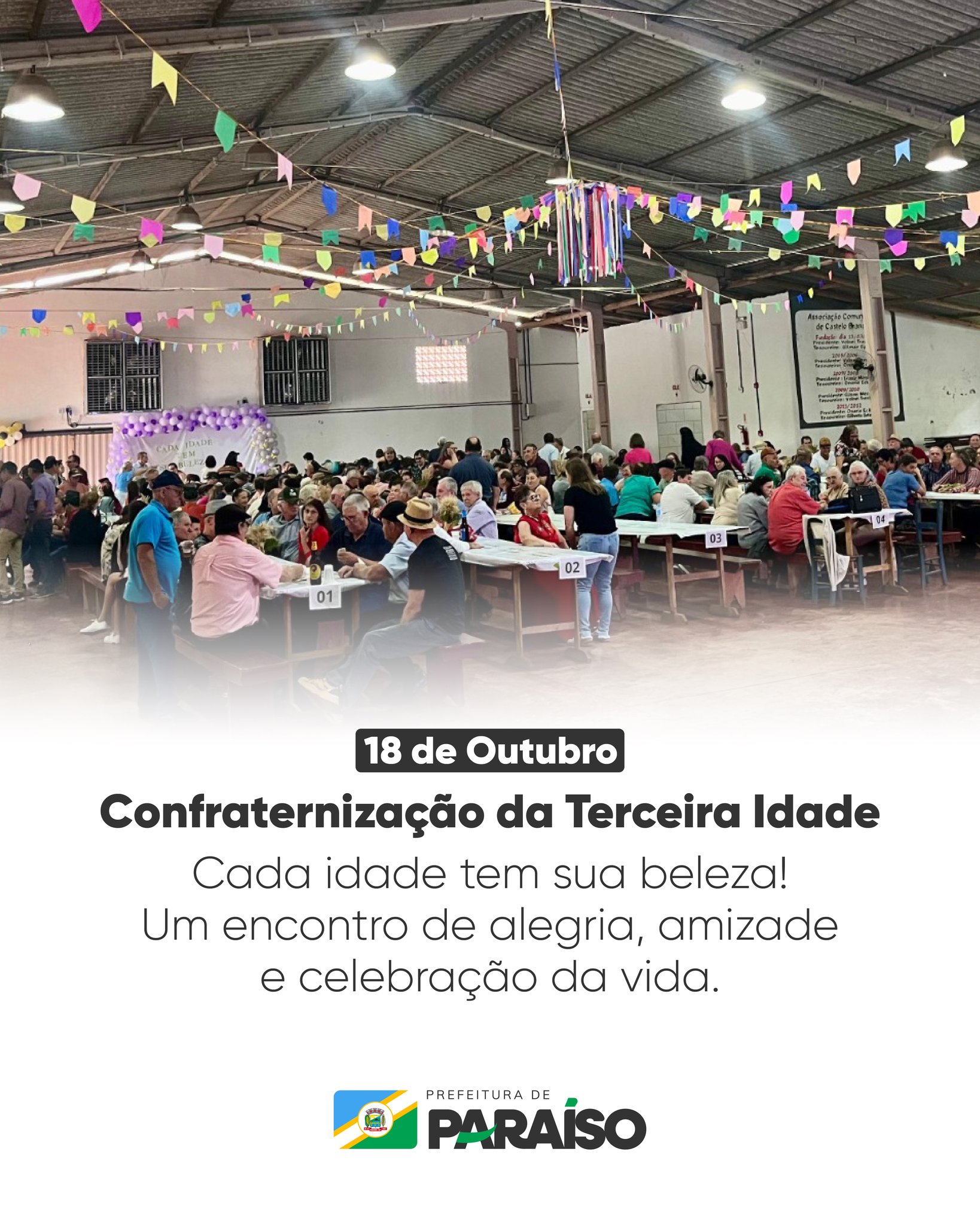Última atualização: 2025/10/28 5:44:35No último dia 18 de outubro, a Prefeitura Municipal e a Secretaria de Assistência Social do Município de Paraíso realizaram uma linda e emocionante confraternização da Terceira Idade na Comunidade da Linha Castelo Branco.
