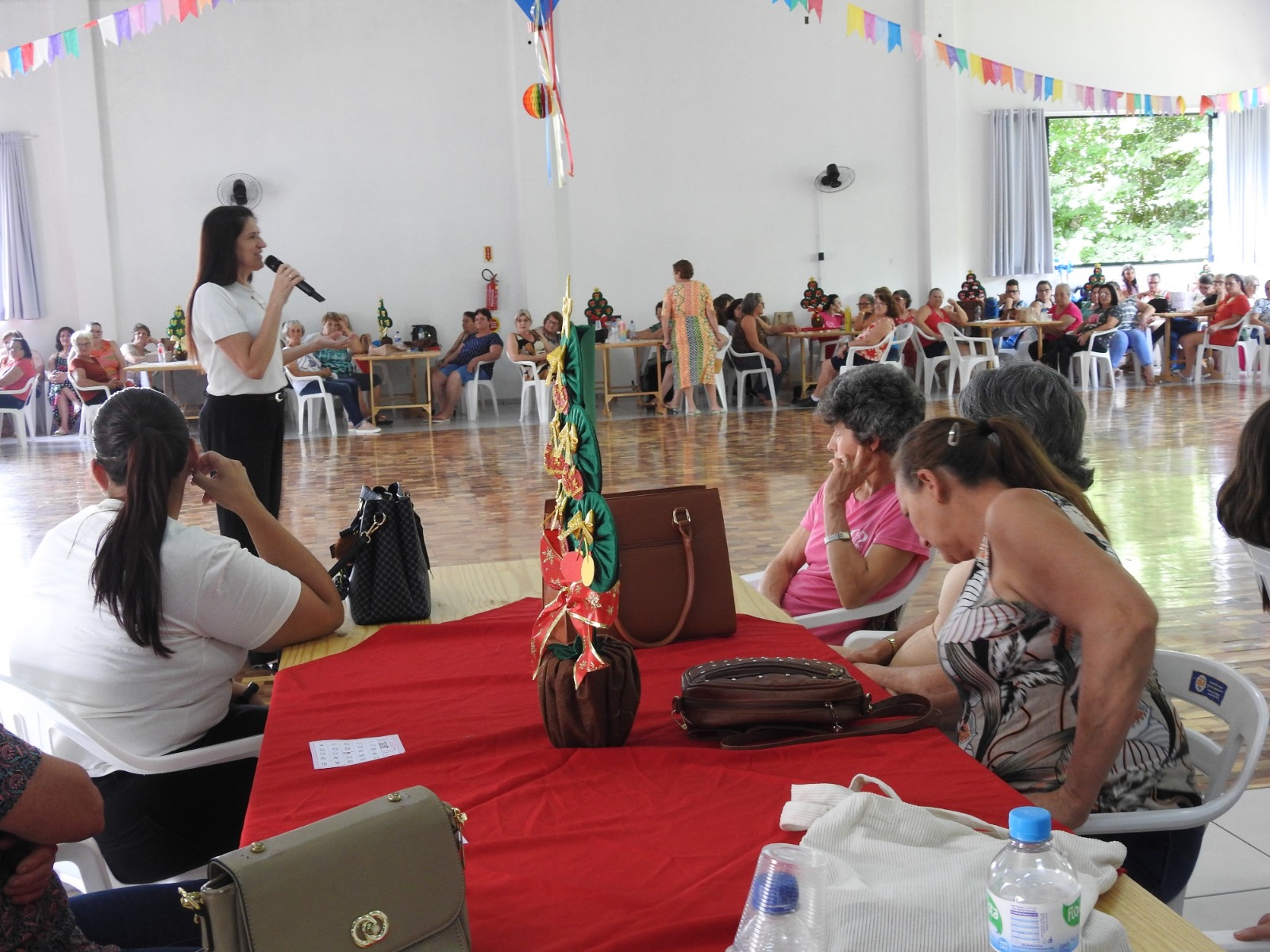 Participaram do encontro o prefeito Wilson Trevisan, a secretária de Assistência Social, Andreia Rebelato, e a chefe de divisão de Política da Mulher, Jussara Marangon, além de servidores municipais. A programação incluiu uma palestra ministrada pela professora Janes Cerezer, da Unoesc, que abordou o tema “Cuidado e Autoestima”.