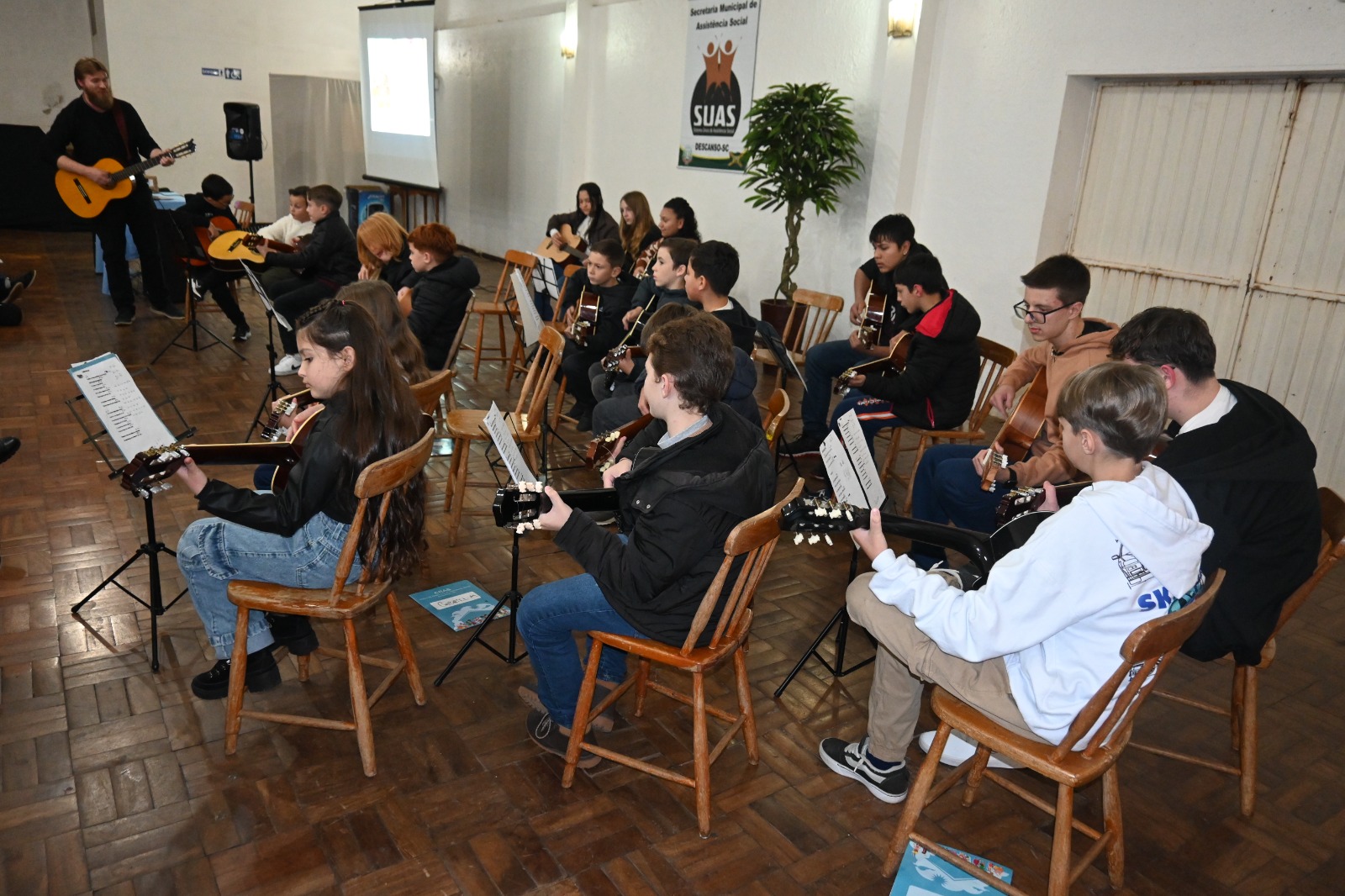 A programação iniciou com a saudação das autoridades, a apresentação dos profissionais que compõe a secretaria e uma breve explanação do secretário, Miguel Rodrigues, sobre as atividades oferecidas pelo SCFV e importância da família no desenvolvimento das crianças. Os presentes acompanharam uma produção audiovisual feita durante as aulas das diversas oficinas e encerrou com uma apresentação dos alunos de violão que, com apenas dois meses de aula, entregaram duas músicas e muito talento aos familiares presentes.
