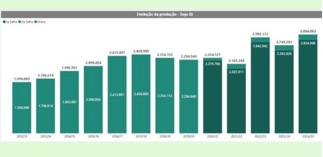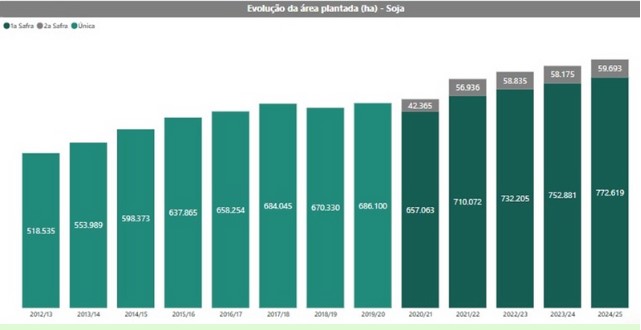 A soja vem ganhando cada vez mais espaço no agronegócio catarinense, principalmente em áreas que antes eram usadas para o plantio de milho. De acordo com dados do Observatório Agro Catarinense, ao longo dos últimos 12 anos, Santa Catarina aumentou em 93% a produção do grão e 60,5% a área plantada. Para a primeira safra 2024/2025 da cultura no Estado, de  o Centro de Socioeconomia e Planejamento Agrícola (Epagri/Cepa) estima o grão teve um aumento de 2,62% na área plantada, 9,79% na produtividade média e um aumento de 12,67% na quantidade produzida.