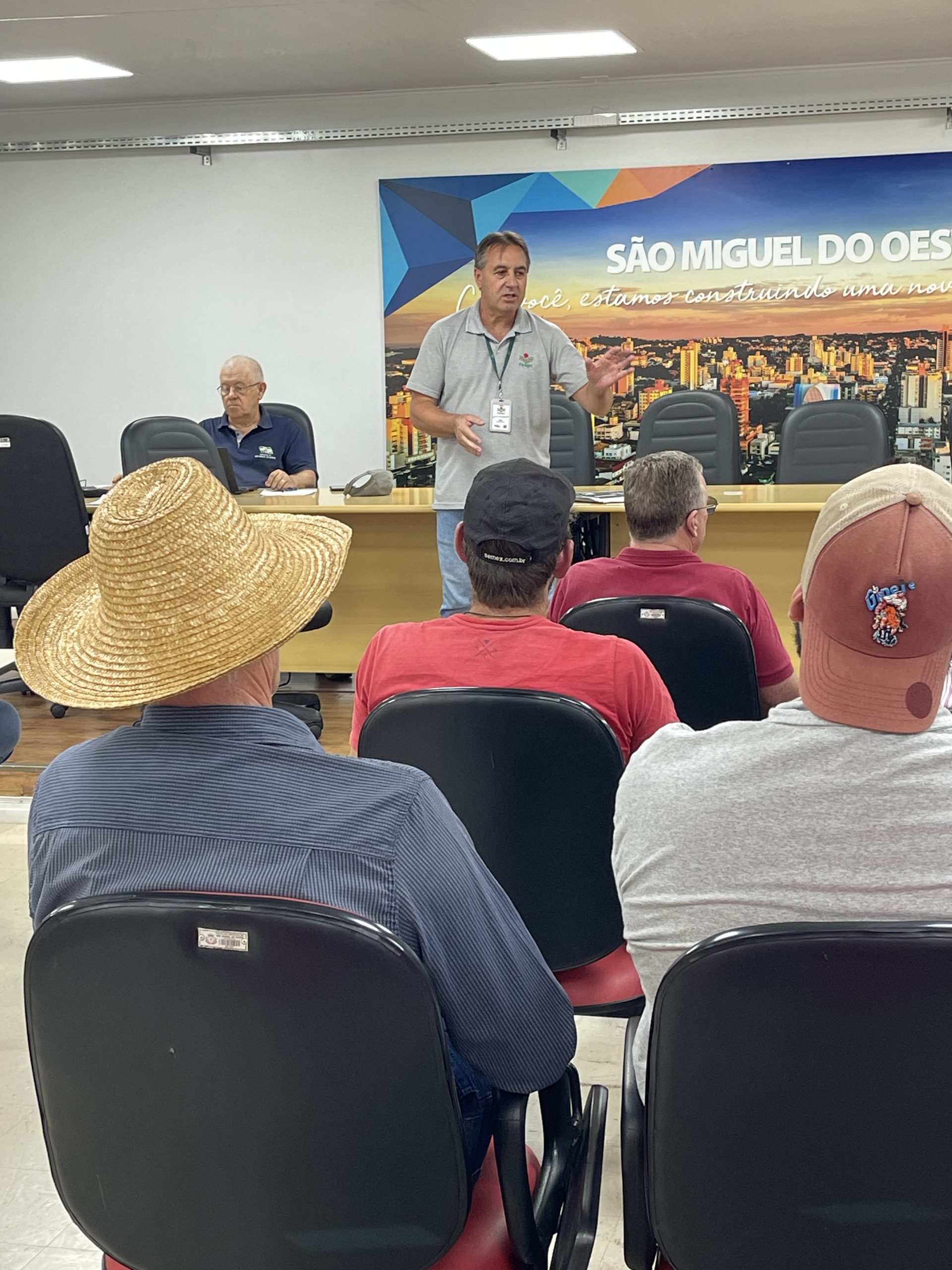 Produtores de peixes de São Miguel do Oeste participaram, na tarde desta terça-feira (17), de uma reunião promovida pela Secretaria Municipal de Agricultura, Pecuária e Piscicultura, em parceria com a Administração Municipal, EPAGRI e o Conselho Municipal de Desenvolvimento Rural (COMDER). O encontro foi realizado no Salão Nobre da Prefeitura e teve como objetivo discutir ações e políticas públicas voltadas ao fortalecimento da piscicultura no município.