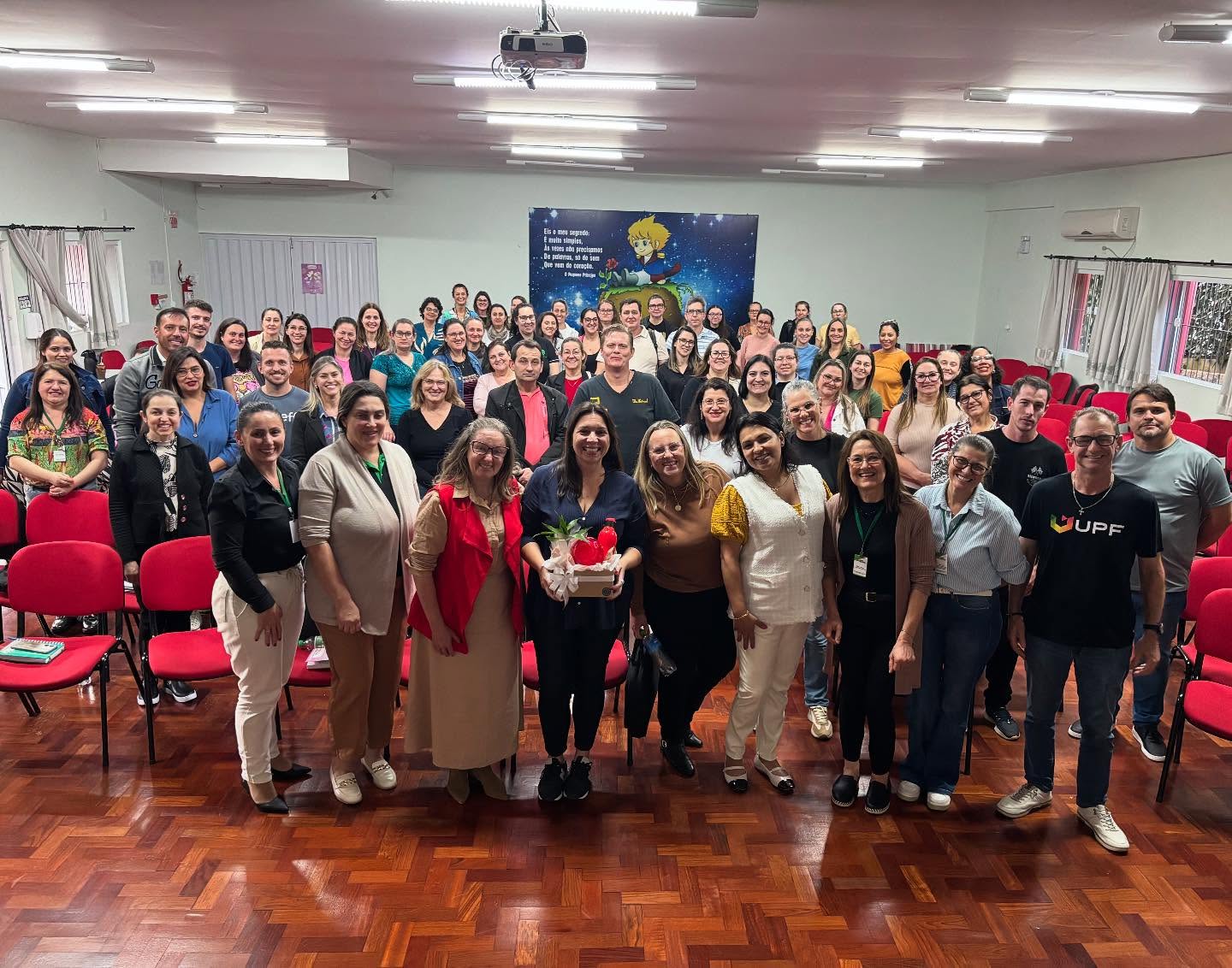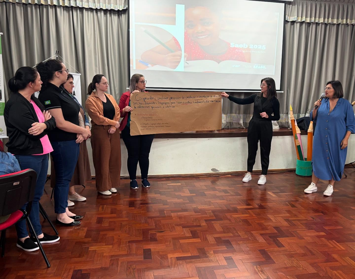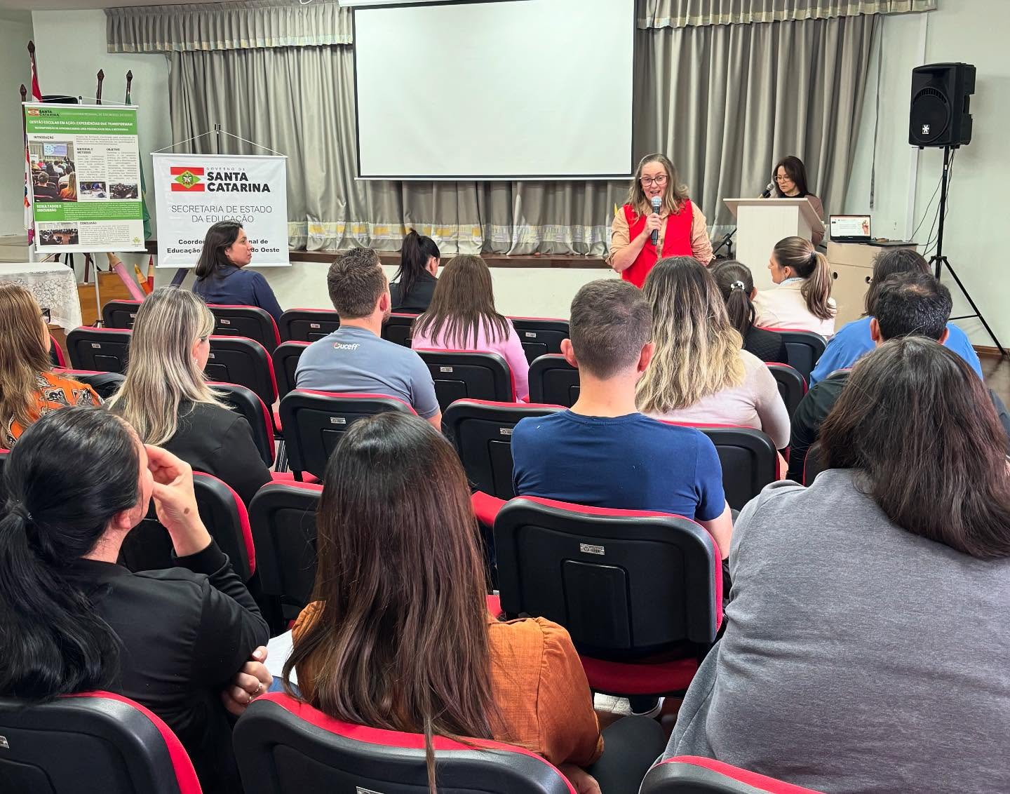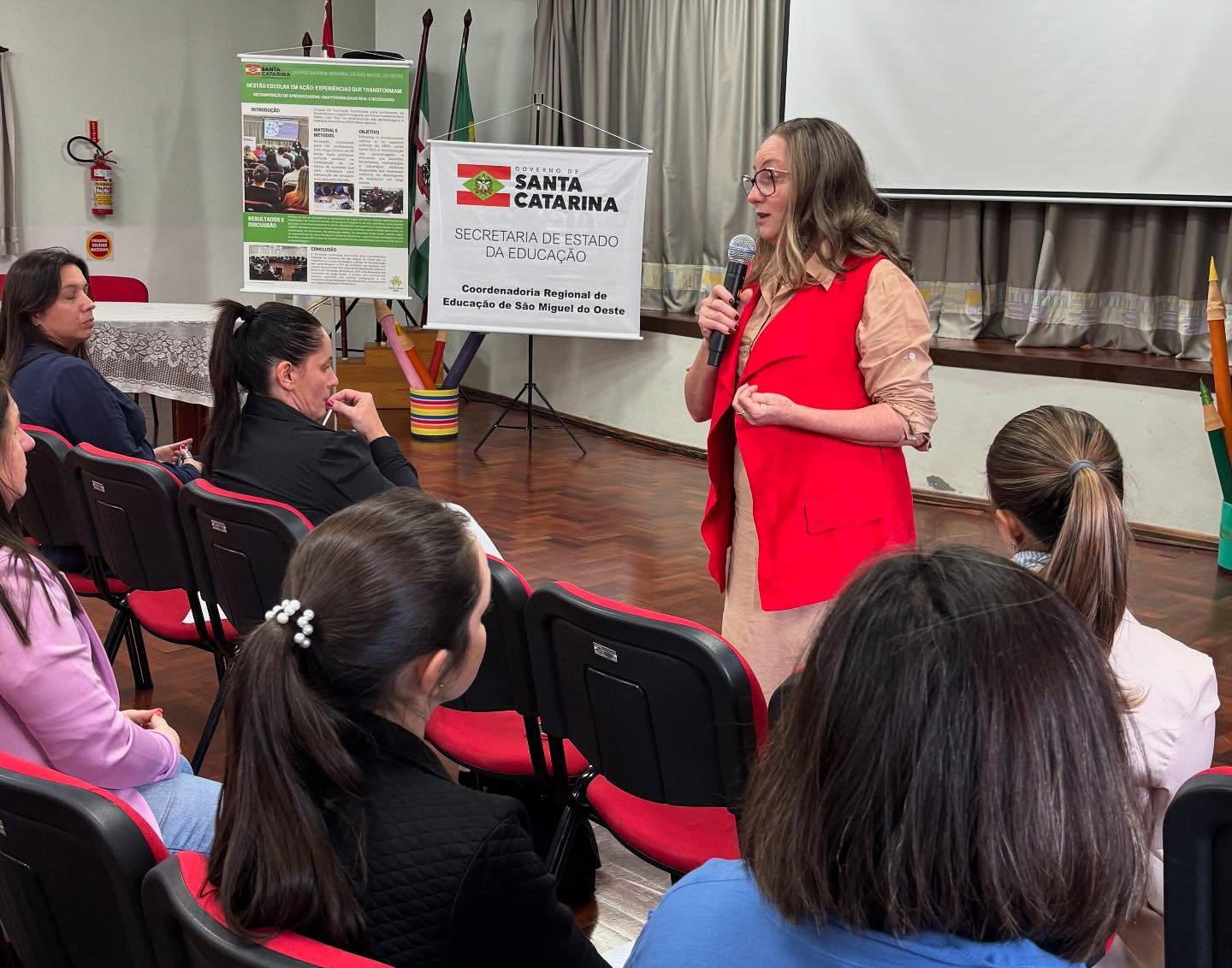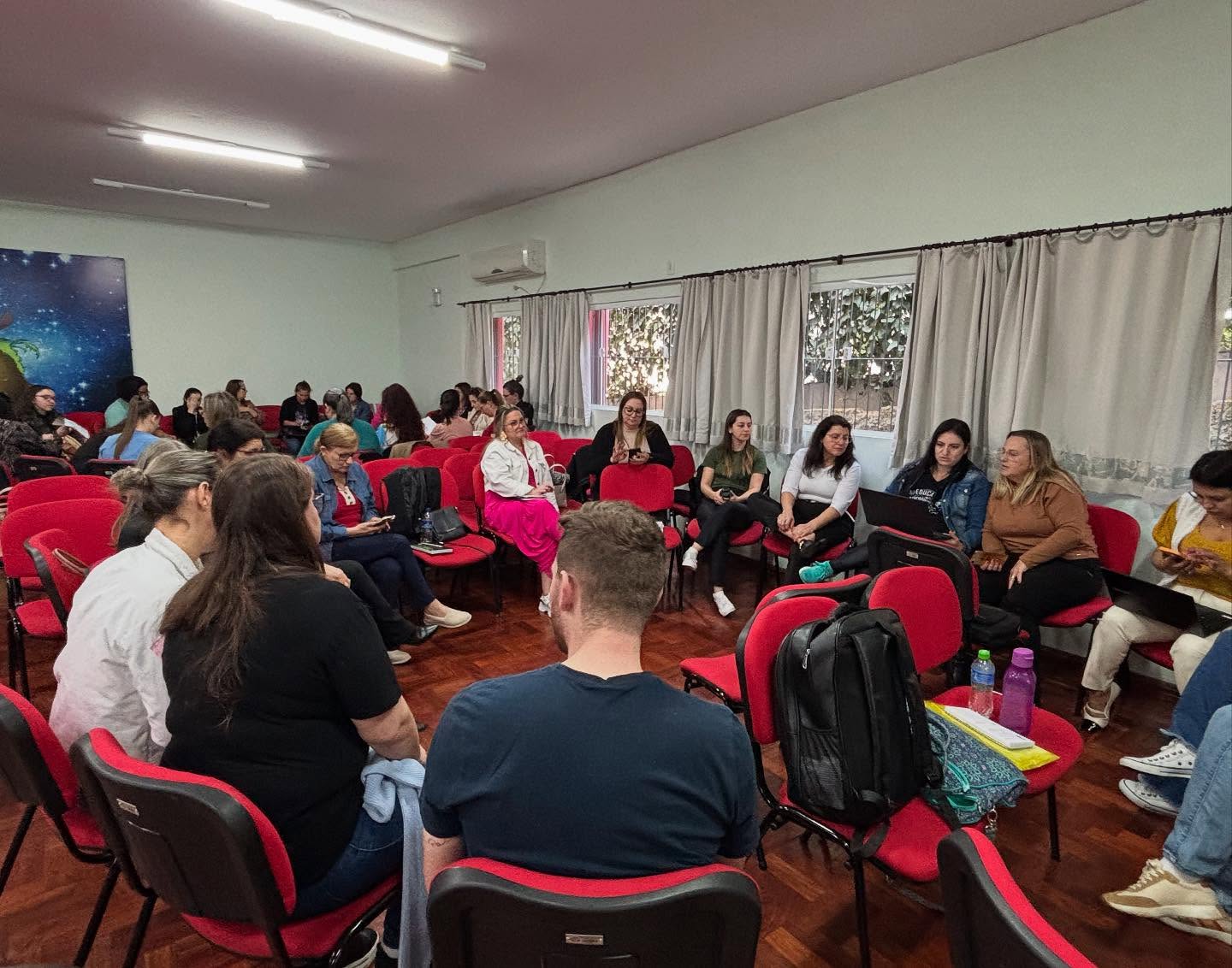 O evento, realizado no auditório da Escola Municipal Emma Balke, reuniu cerca de 90 profissionais da Rede Estadual e representantes da Rede Municipal de São Miguel do Oeste. Estiveram presentes também membros de equipes diretivas e pedagógicas, reforçando o caráter coletivo da formação.