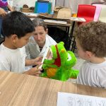 De forma lúdica e interativa, as profissionais reforçaram a importância dos cuidados diários com o corpo e com a saúde bucal, incentivando hábitos saudáveis desde a infância.