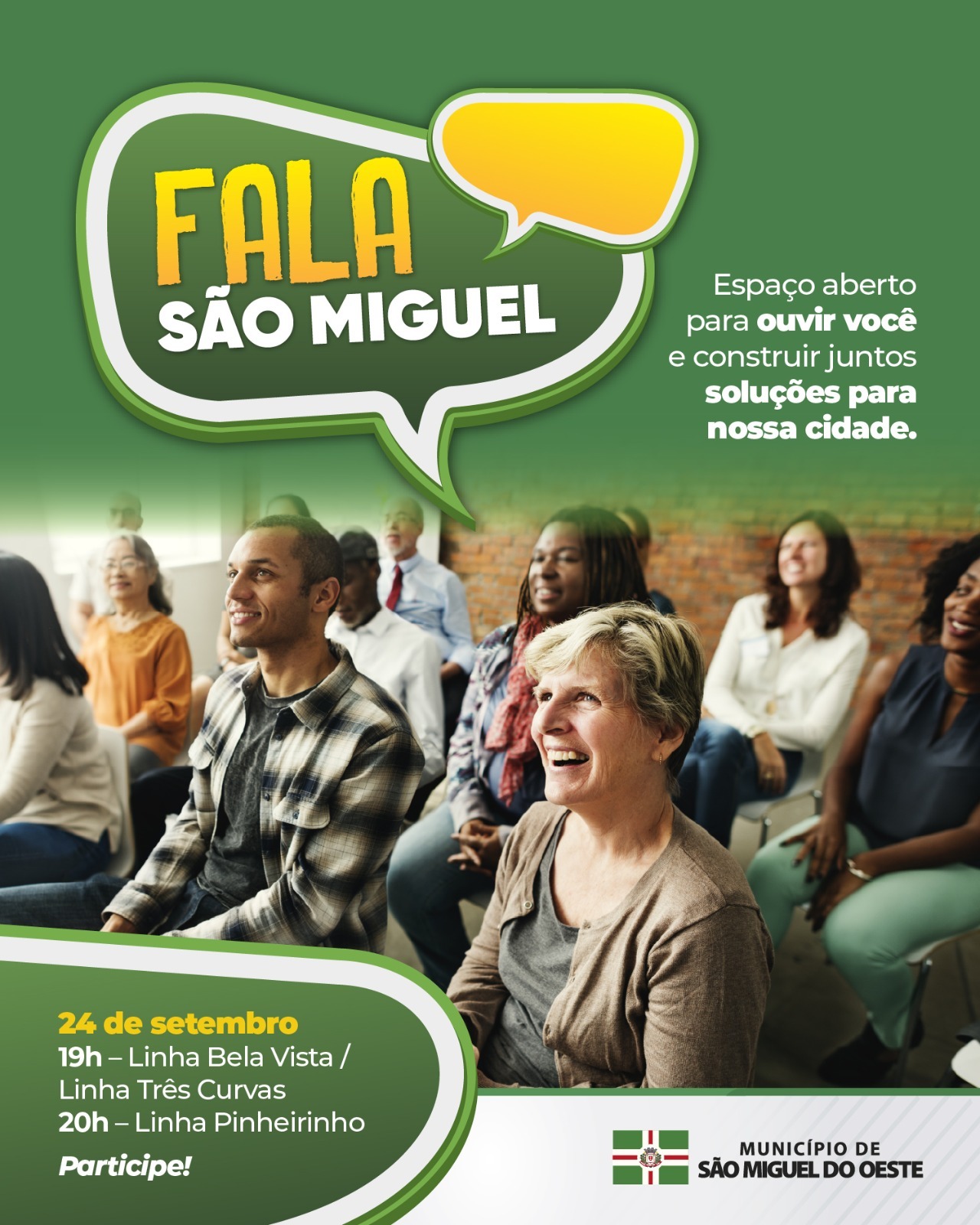 A Administração Municipal de São Miguel do Oeste dará início, nesta terça-feira (24), ao programa Fala São Miguel, uma iniciativa que tem como objetivo ouvir a população em suas comunidades para conhecer as demandas e estabelecer um canal direto de diálogo entre moradores e o Executivo.