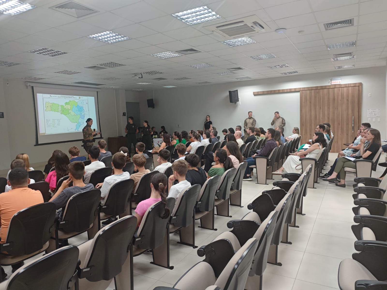 Última atualização: 2025/03/27 4:32:25Na noite desta quarta-feira (26), foi realizada no auditório do SICOOB São Miguel, a aula inaugural e reunião com os pais dos alunos selecionados para integrar a 29ª turma do programa protetores ambientais realizado pelo 2º pelotão da 1ª companhia do 2º batalhão da polícia ambiental de São Miguel do Oeste.
