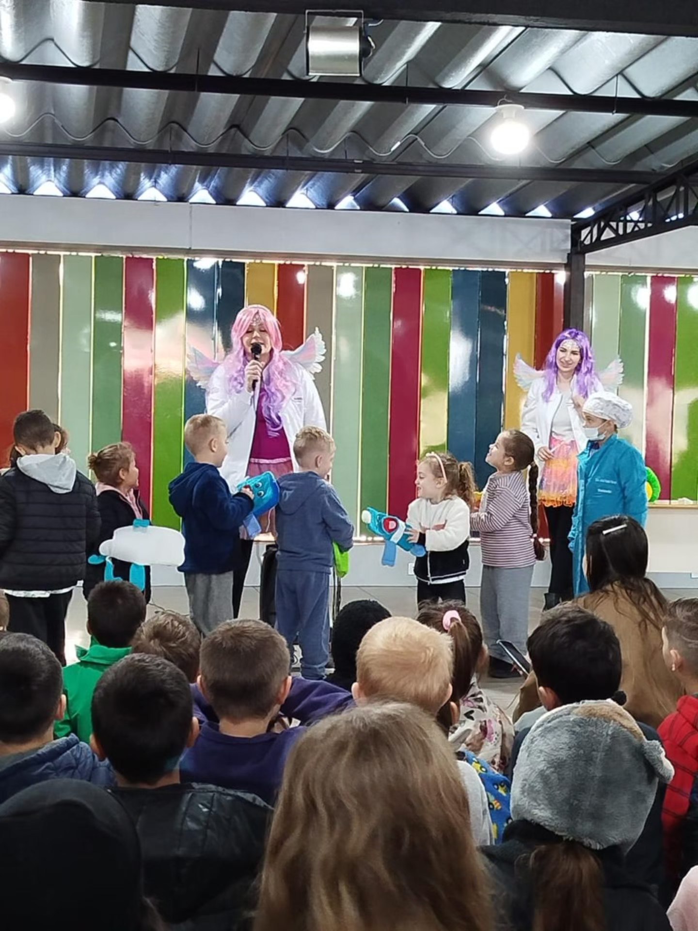 As turmas do Jardim, Pré, 1º, 2º e 3º anos participaram de uma apresentação lúdica com as Fadas do Dente, desenvolvida para tornar o aprendizado mais envolvente e acessível às faixas etárias iniciais. A ação foi coordenada pela cirurgiã-dentista Dra. Ana Piccoli, responsável técnica da Equipe de Saúde Bucal, com o apoio da secretária de saúde e da diretora do educandário. A iniciativa integrou profissionais da saúde e da educação em uma abordagem preventiva e didática.