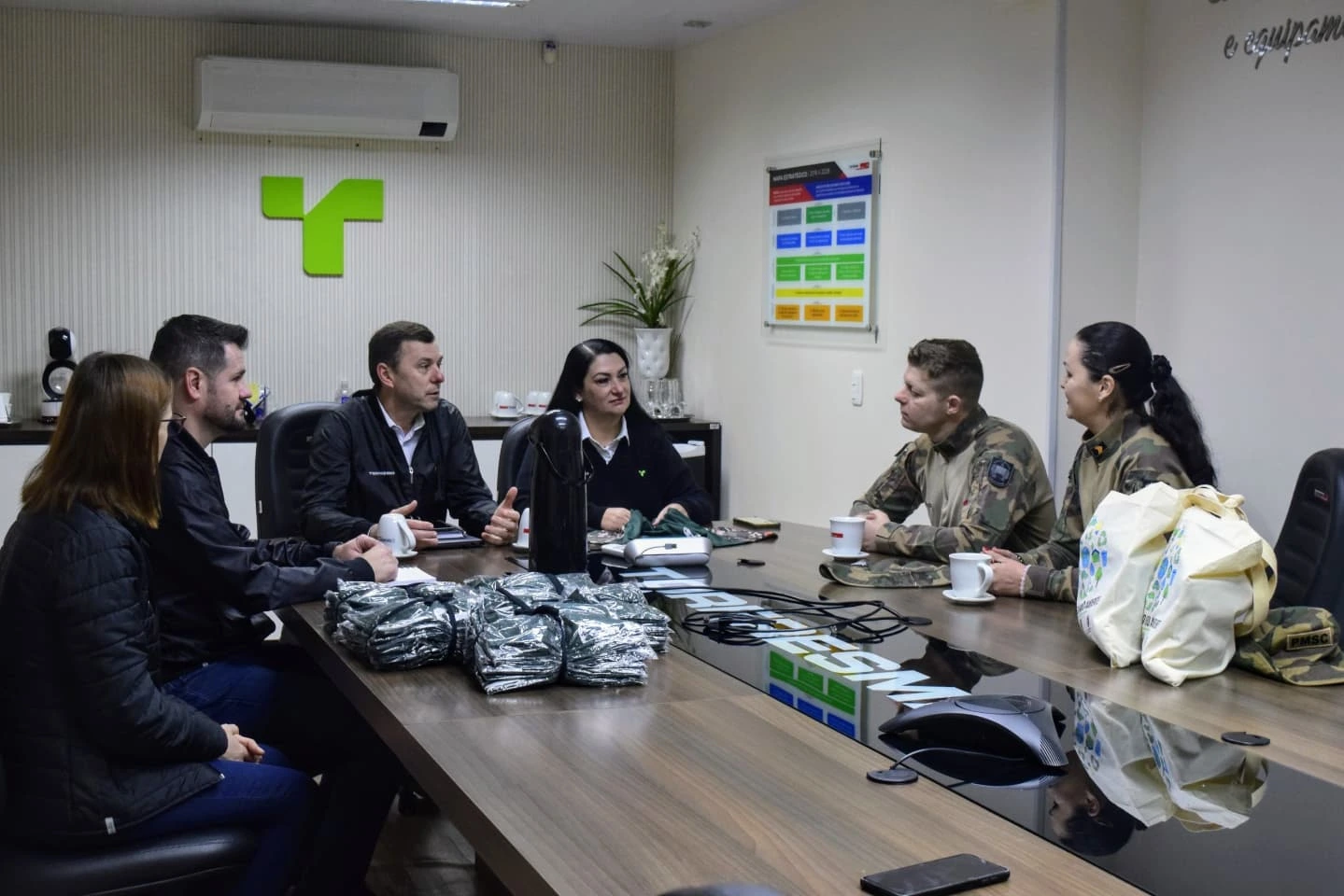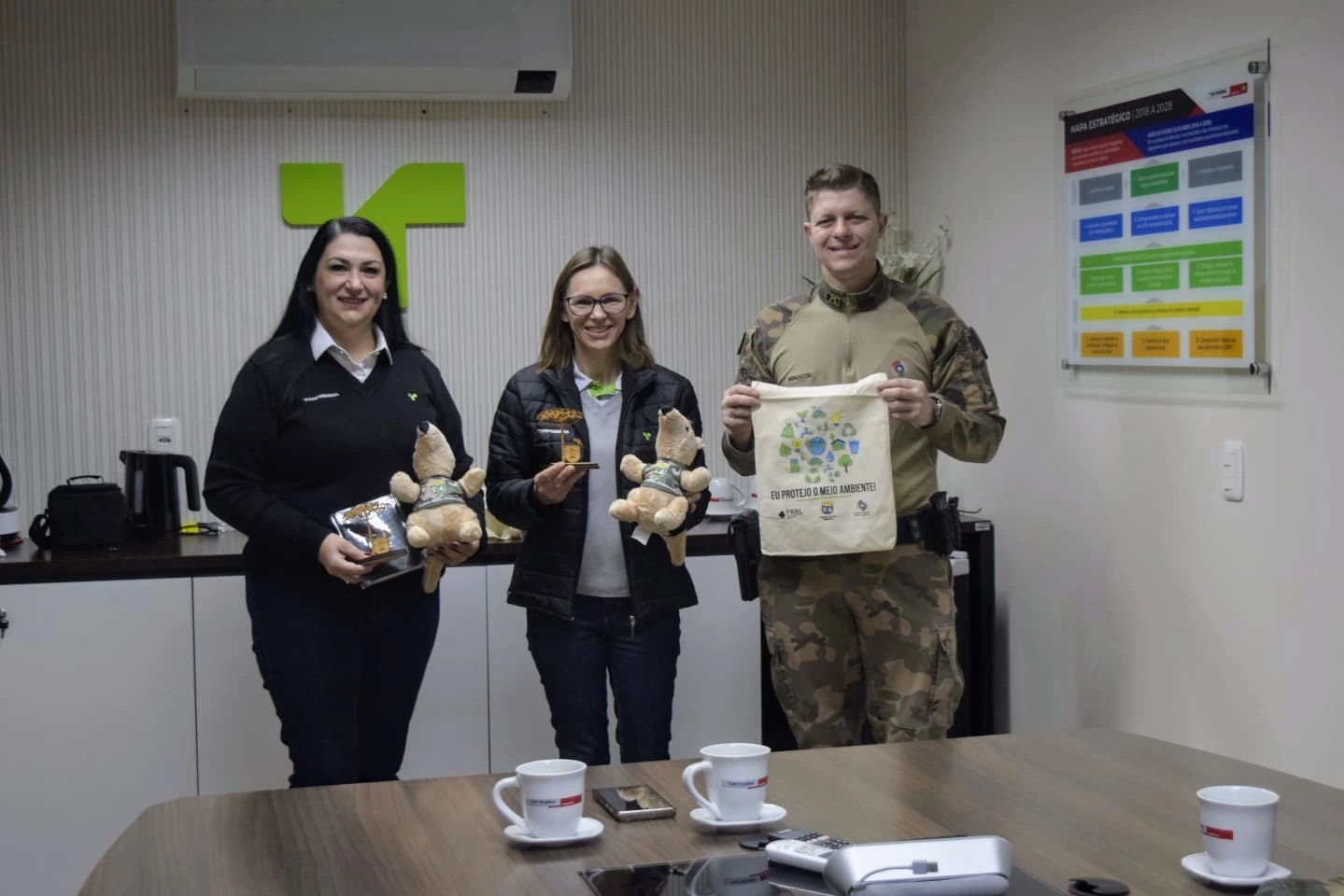 Durante o ato simbólico, os diretores da empresa patrocinadora, Claudimar Bortolin e Janete Camini Bortolin, entregaram 92 camisetas ao Capitão Alcenir Luis Minuscoli, comandante do 2º Pelotão de Polícia Militar Ambiental. As peças serão utilizadas pelos alunos durante as atividades do projeto, que visa conscientizar crianças sobre a preservação ambiental, sustentabilidade e cidadania.