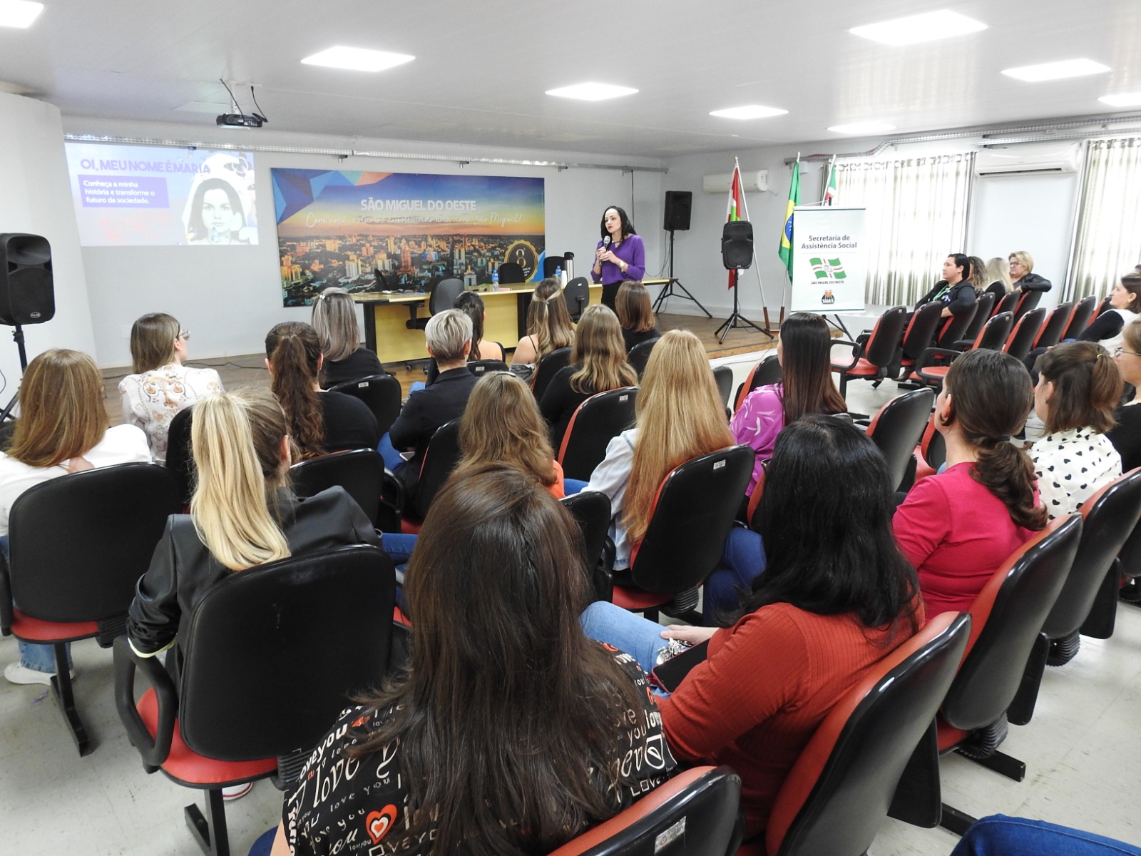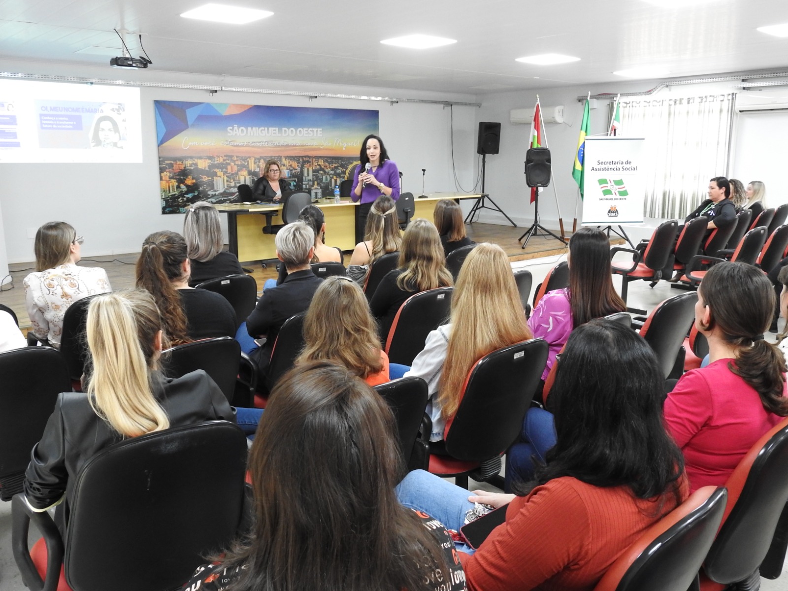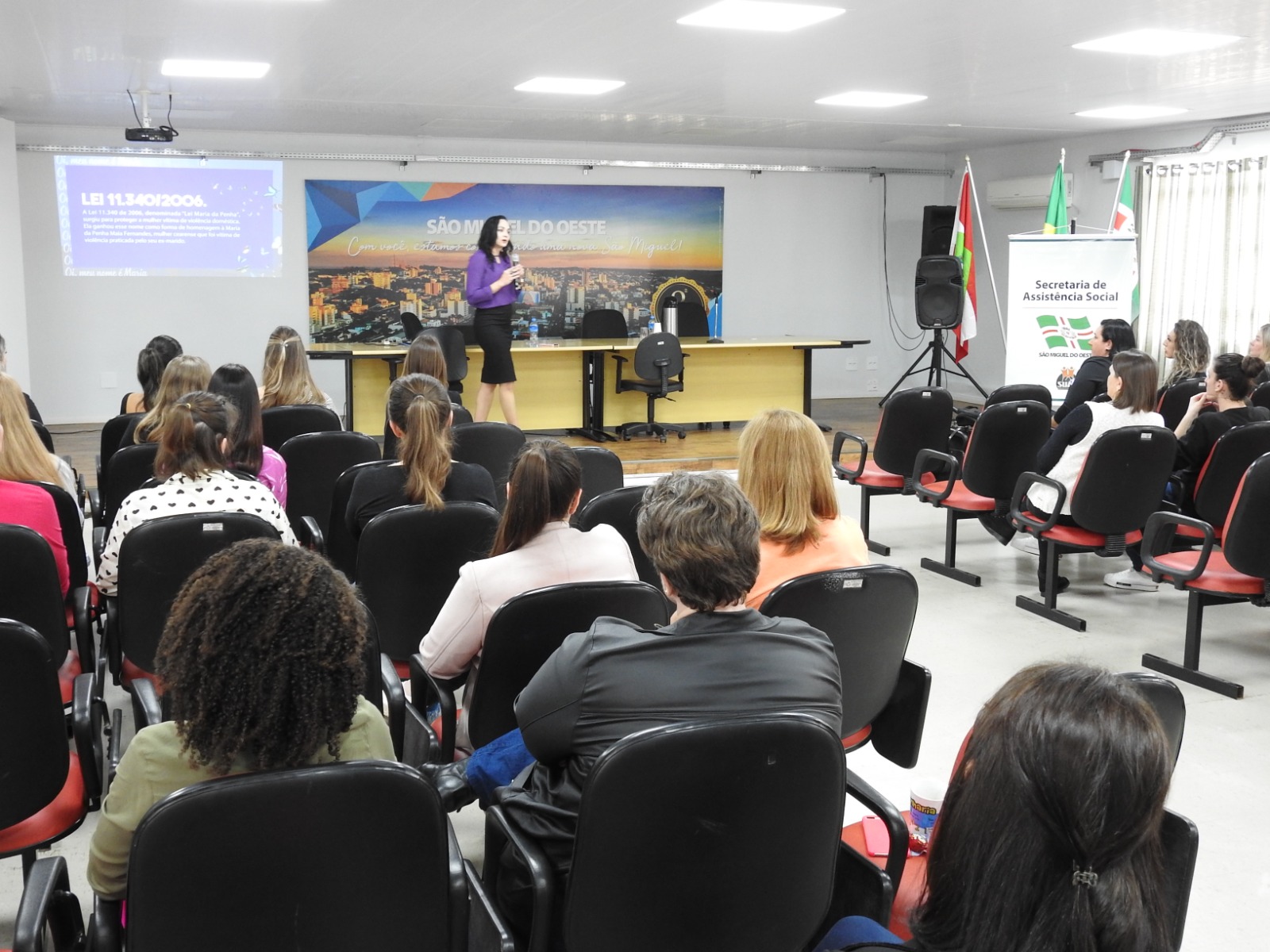 Dando prosseguimento às ações da Campanha Agosto Lilás, de enfrentamento à violência doméstica e familiar contra a mulher, a Secretaria de Assistência Social de São Miguel do Oeste promoveu, na tarde da última sexta-feira, dia 11, no Salão Nobre da Prefeitura, uma palestra sobre o tema, da Promotora de Justiça, Marcela Boldori Fernandes, para as servidoras que atuam no Centro Administrativo.