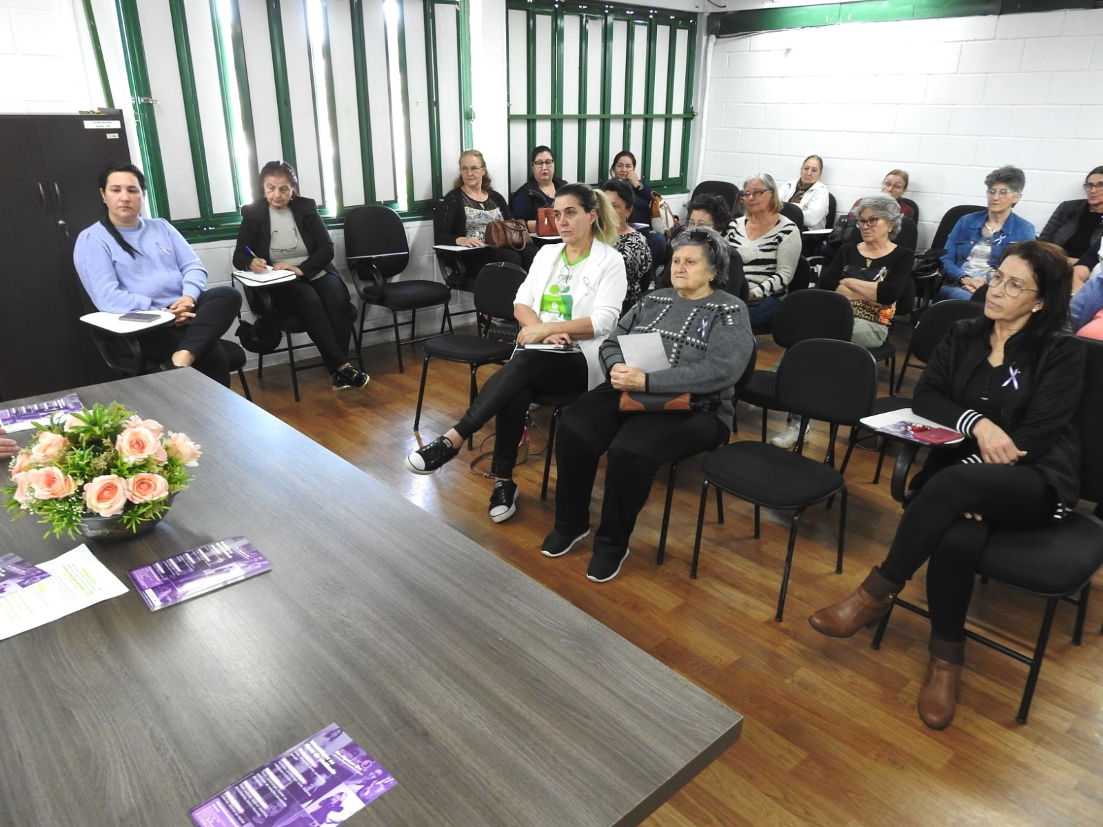 Na tarde desta segunda-feira, dia 14, mais uma atividade da Campanha Agosto Lilás foi realizada. O tema da violência doméstica foi abordado pela equipe do CREAS, psicóloga Michele Zanin e assistente social Simone Thomas. A reunião ampliada foi direcionada às presidentes dos clubes de mães do município e aconteceu no auditório da Secretaria de Assistência Social.