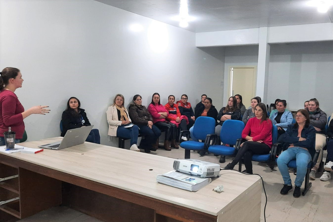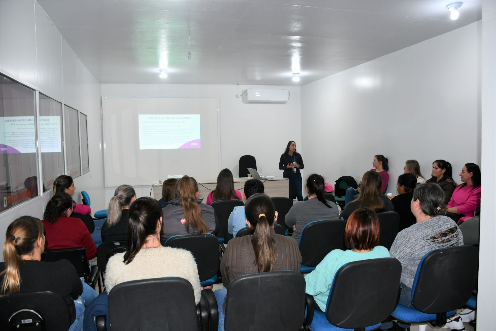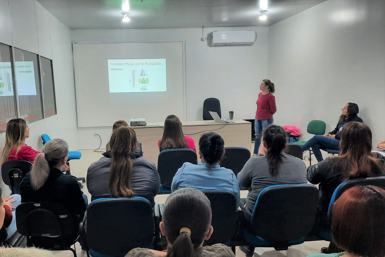 A capacitação foi conduzida pela Nutricionista da Secretaria Municipal de Educação, Andressa Scopel, a servidora da Vigilância Sanitária Municipal, Neusa Canei, e a Técnica em Segurança do Trabalho, Ana Silva, representante do SESI/SENAI.