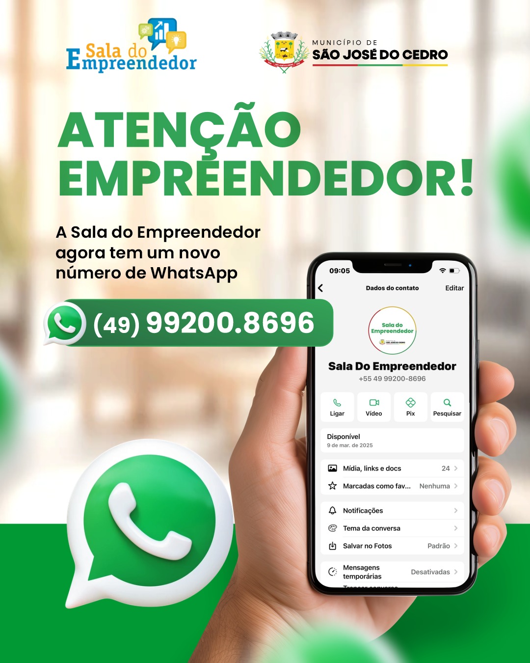 Novo número de WhatsApp agiliza serviços e amplia suporte aos empreendedores locais