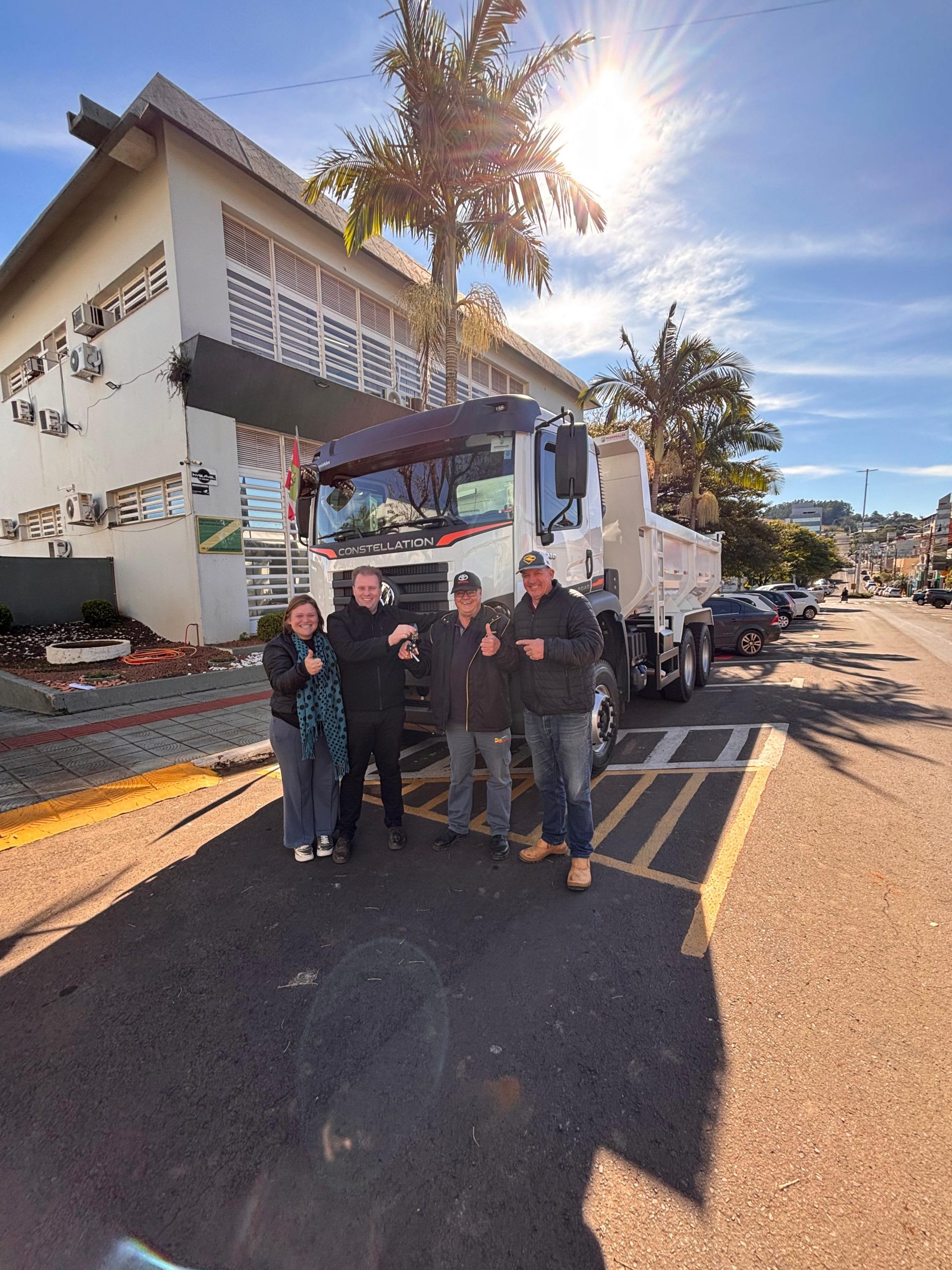 Última atualização: 2025/07/07 9:41:20A Administração Municipal de São José do Cedro anunciou, na última sexta-feira (05), a incorporação de um novo caminhão caçamba à frota da Secretaria de Obras. O veículo foi adquirido com investimento total de R$ 623.321,00, custeado com recursos próprios do Município, provenientes da alienação de bens inservíveis arrecadados durante o leilão público realizado recentemente.