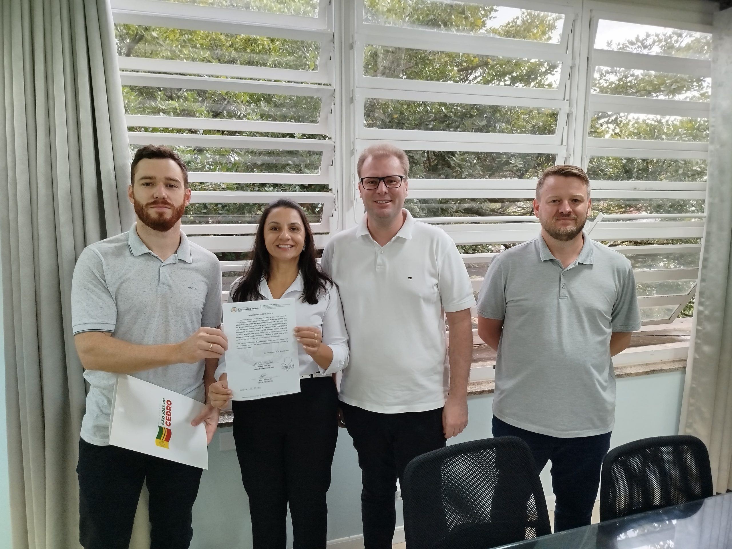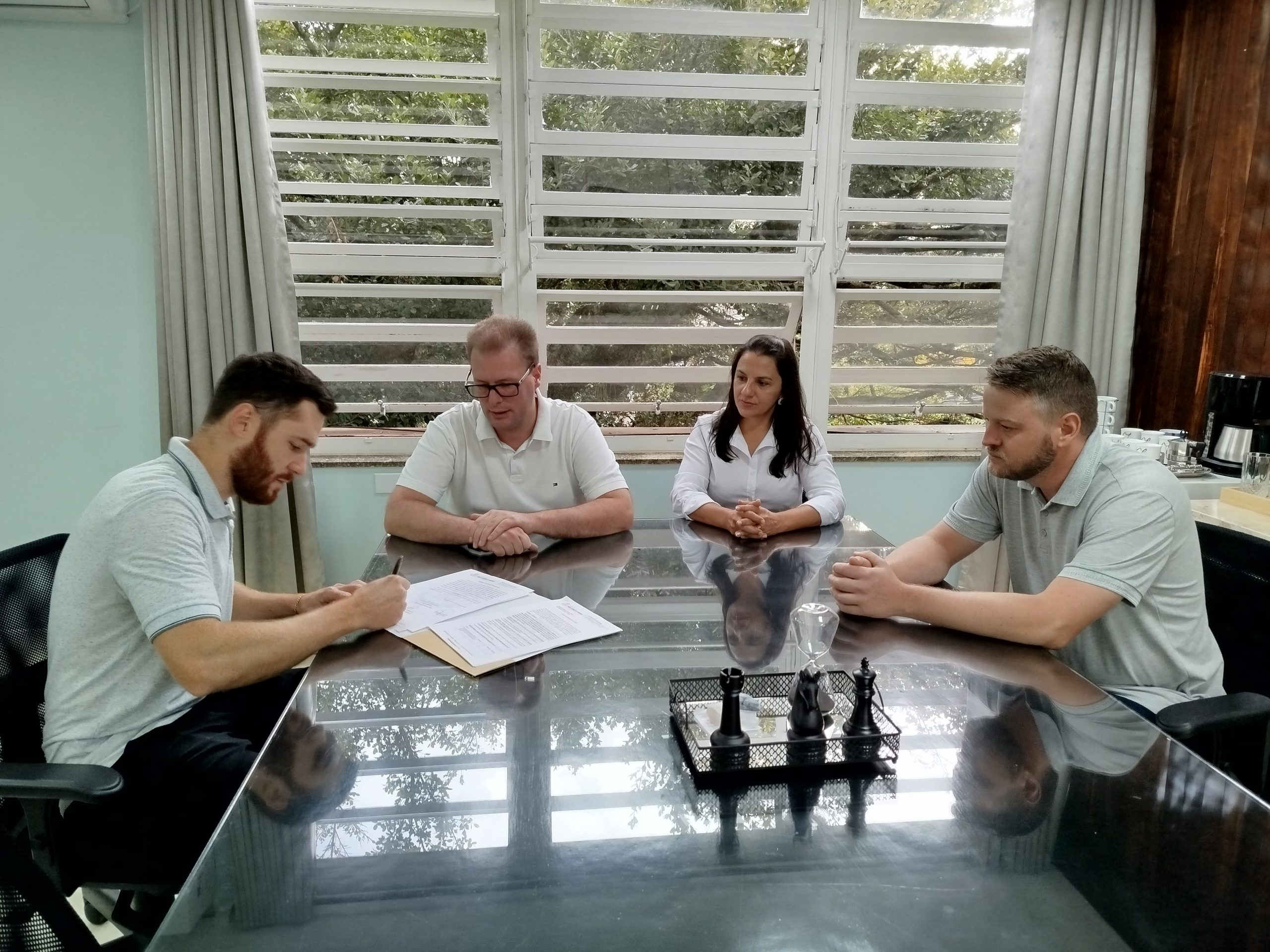 Última atualização: 2025/05/09 1:32:00Na manhã desta sexta-feira (09), a Administração Municipal de São José do Cedro deu um passo importante para a melhoria dos serviços de saúde com a assinatura da ordem de serviço que autoriza o início das obras da nova Unidade Básica de Saúde (UBS) no bairro Santa Rita. O ato oficial ocorreu no gabinete do prefeito Fernando Júlio Will e representa um marco na ampliação da rede municipal de atenção básica.