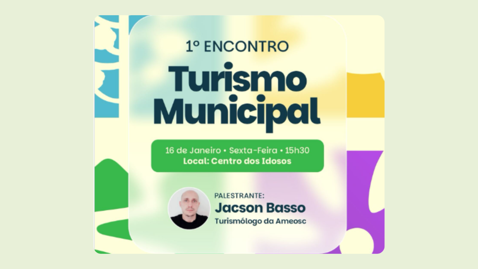 Última atualização: 2026/01/13 4:21:42A Administração Municipal de São José do Cedro realiza nesta sexta-feira, às 15h30, no Centro dos Idosos Padre Rômulo Zimmer, o 1º Encontro Municipal do Turismo, iniciativa voltada a empreendedores, investidores e interessados no setor. O evento propõe uma imersão técnica e estratégica sobre o potencial turístico local e regional, posicionando o turismo como vetor de desenvolvimento econômico e social.