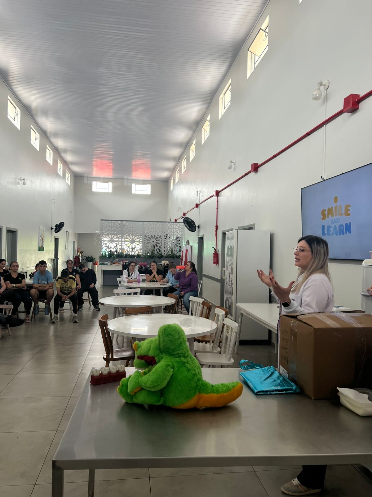 A atividade contou com a presença da secretária de saúde Janete Dallo e contemplou cerca de 200 alunos e colaboradores, que receberam orientações sobre higiene bucal e também kits de escovação para reforçar os cuidados no dia a dia.