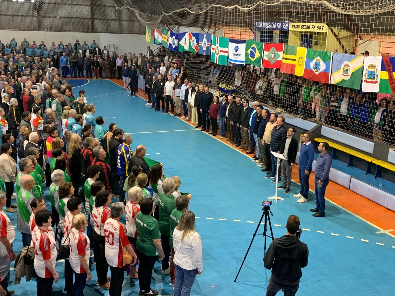 Última atualização: 2025/08/29 11:16:01A quinta edição da Olimpíada da Terceira Idade (OTI) teve início nesta Sexta-feira(29), no ginásio de esportes Lauter Weber, em São José do Cedro, reunindo mais de 870 atletas de 19 municípios do Extremo-Oeste catarinense. Pela primeira vez, todos os municípios filiados à AMEOSC participaram, fortalecendo o encontro regional e destacando a valorização da prática esportiva entre a população idosa.