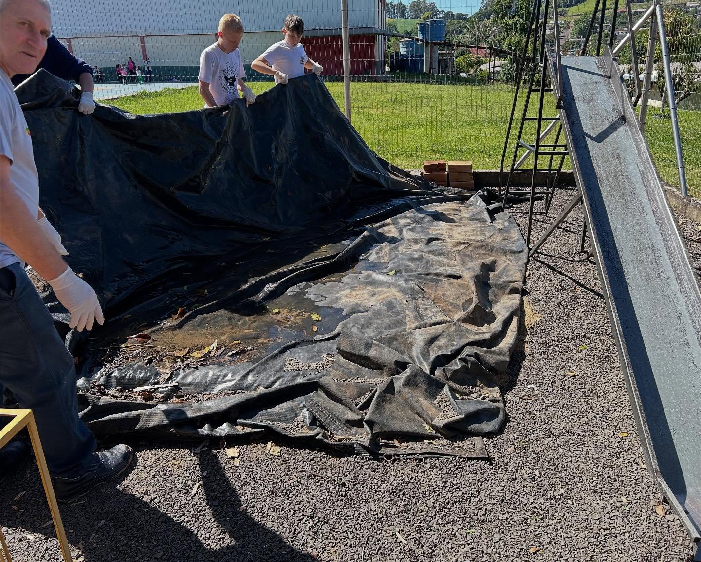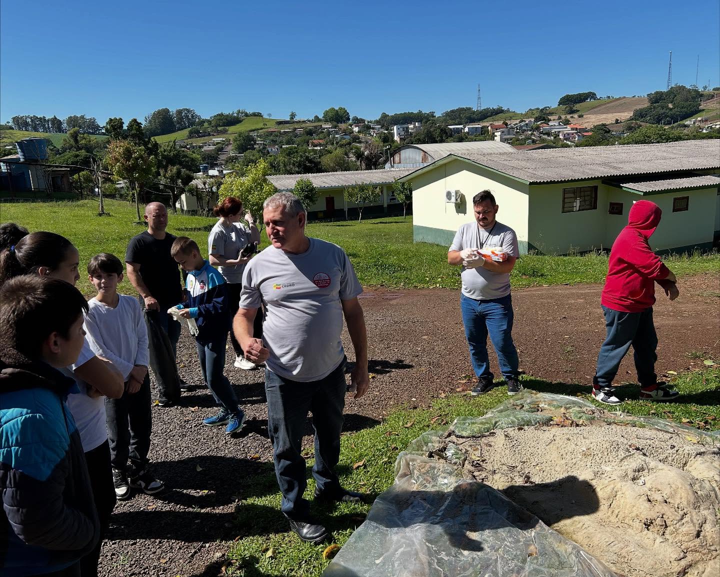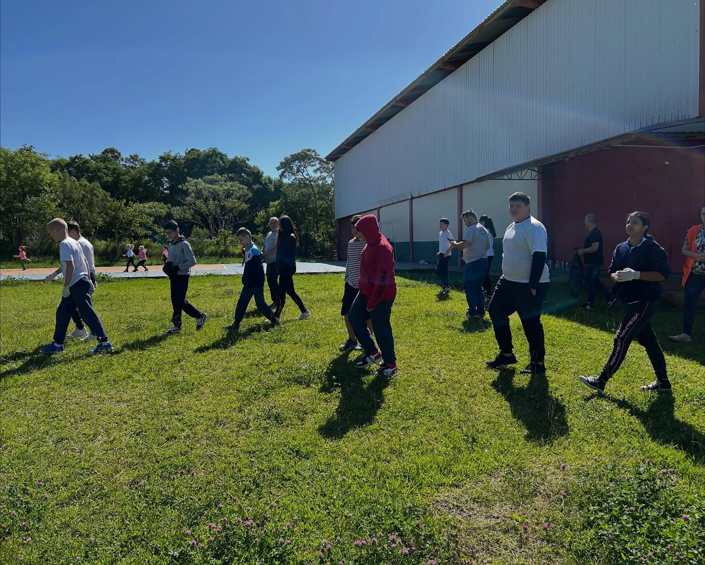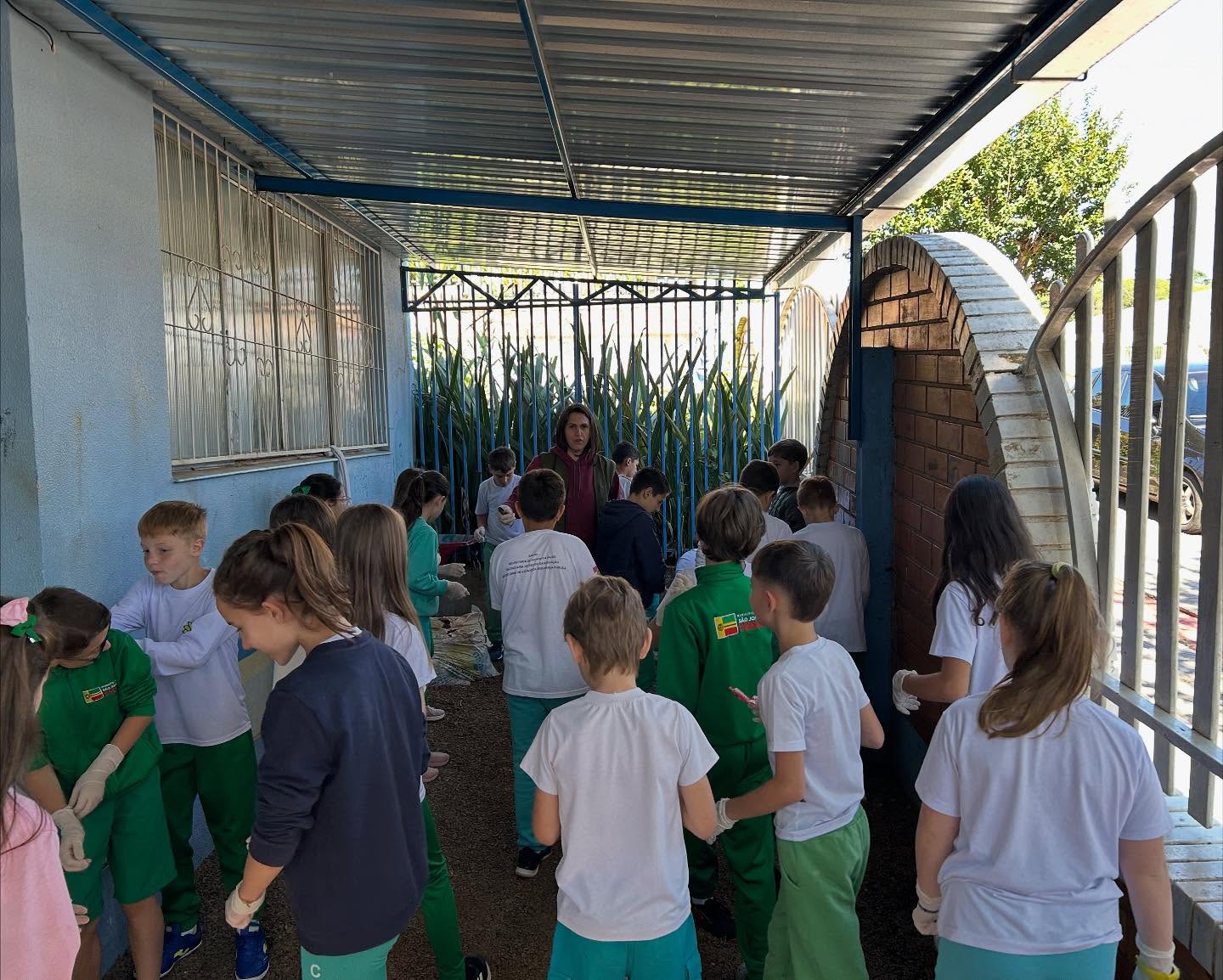 Durante a ação, os alunos participaram ativamente da varredura dos pátios, recolhendo resíduos, eliminando pontos de água parada e aprendendo, na prática, a identificar riscos. As equipes também promoveram orientações diretas sobre medidas preventivas essenciais — como o uso de repelente, cuidados domésticos e eliminação frequente de recipientes que possam acumular água.