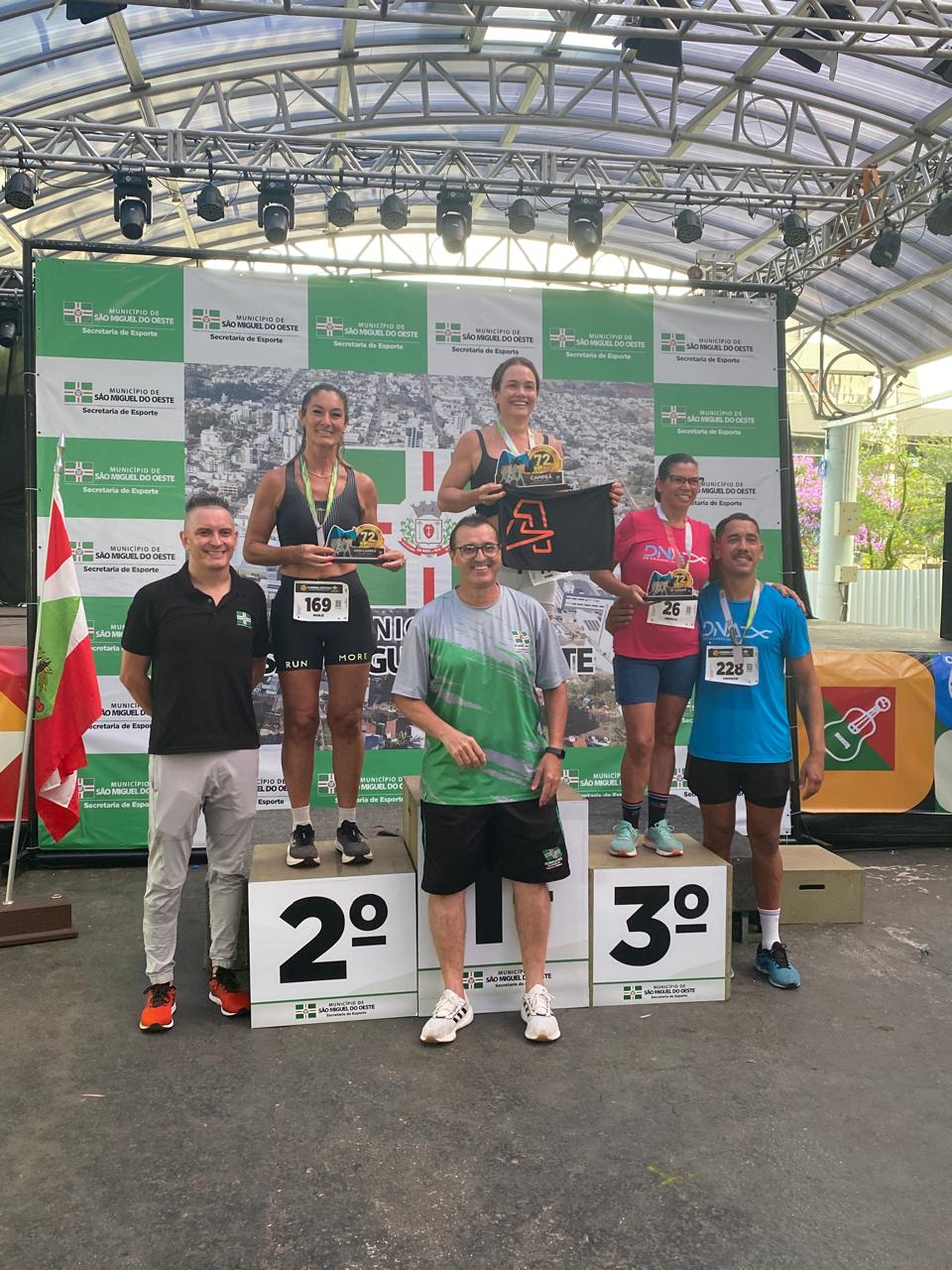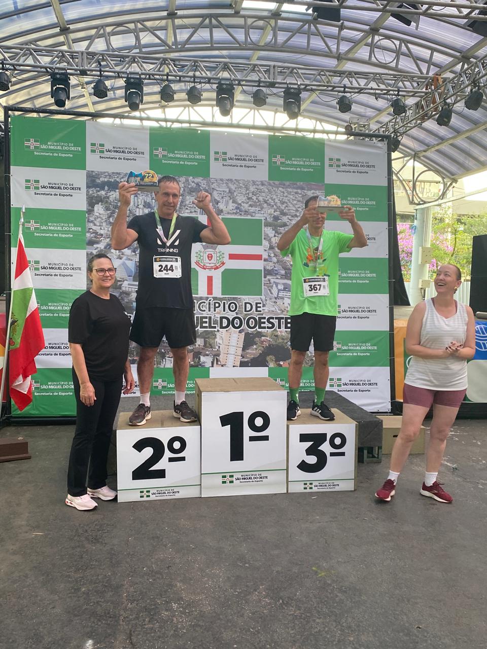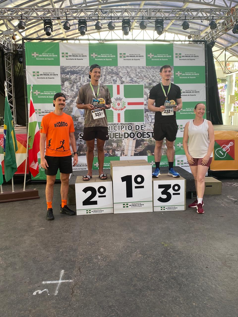 A corrida rústica, realizada pela manhã, marcou o início das comemorações do dia. A prova contou com percurso de cinco quilômetros, com largada e chegada na Praça Walnir Bottaro Daniel, reunindo atletas locais e regionais. O evento esportivo teve ampla participação e reforçou a presença da modalidade no calendário municipal. O prefeito participou simbolicamente da largada e destacou a importância do incentivo ao esporte e à integração comunitária.
