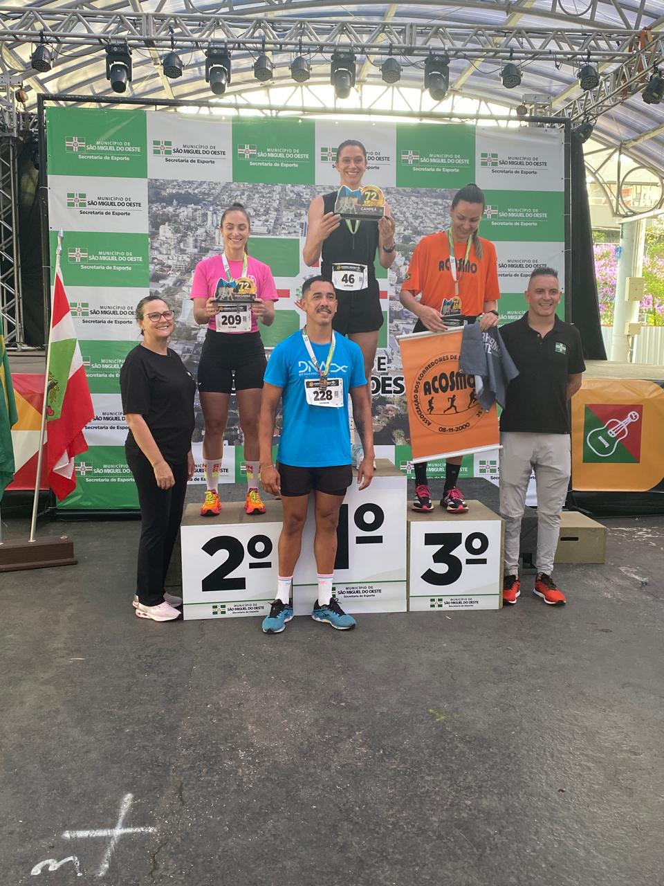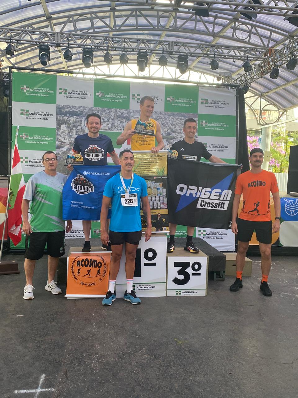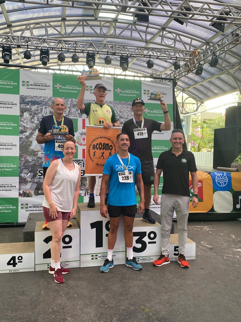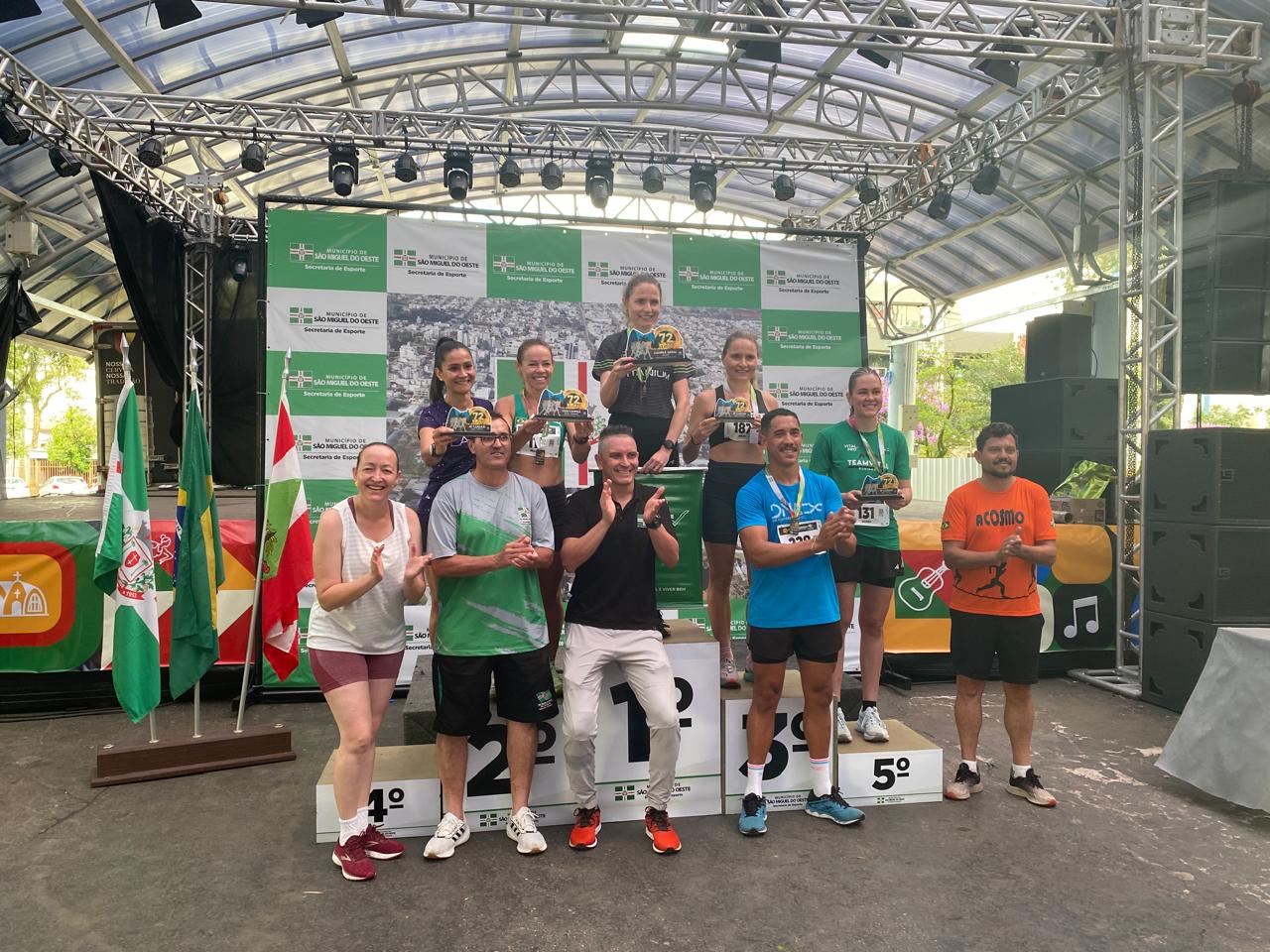 A corrida rústica, realizada pela manhã, marcou o início das comemorações do dia. A prova contou com percurso de cinco quilômetros, com largada e chegada na Praça Walnir Bottaro Daniel, reunindo atletas locais e regionais. O evento esportivo teve ampla participação e reforçou a presença da modalidade no calendário municipal. O prefeito participou simbolicamente da largada e destacou a importância do incentivo ao esporte e à integração comunitária.