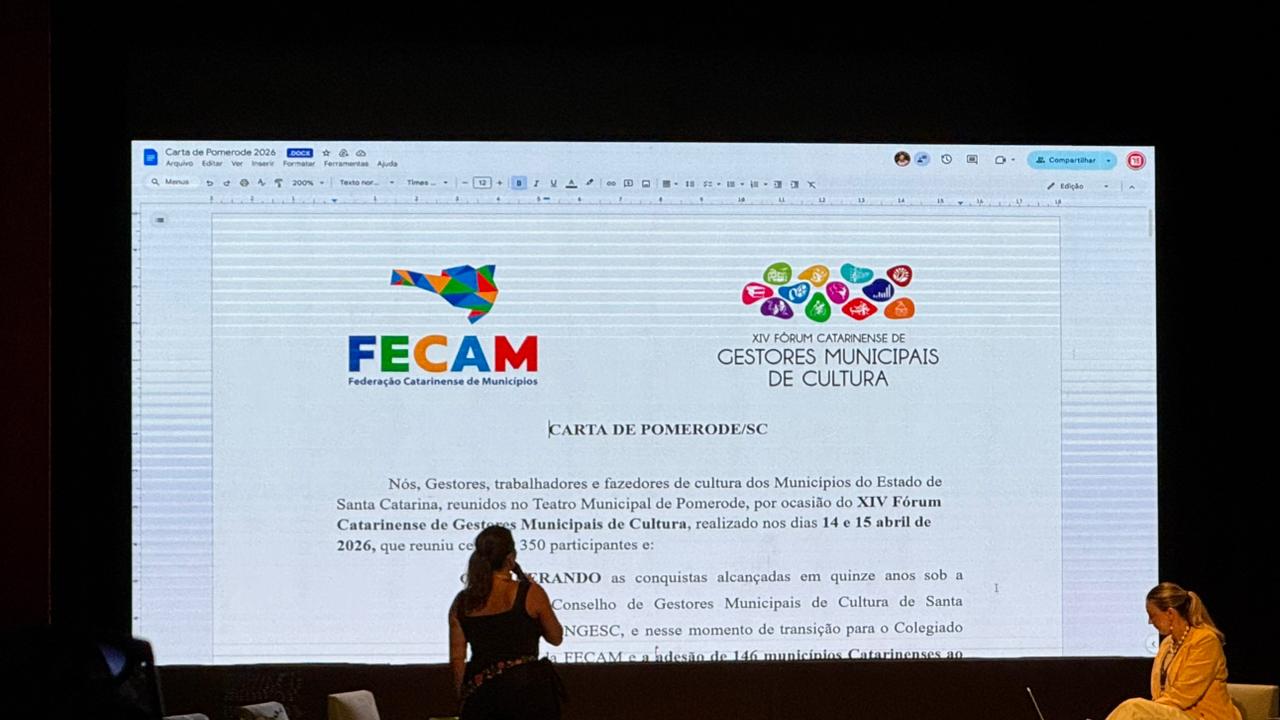 Ao final do fórum, foi redigida a Carta Pomerode, documento que sintetiza as demandas dos gestores catarinenses. O texto será enviado a órgãos competentes nas esferas estadual e federal para orientar a aplicação de políticas culturais.