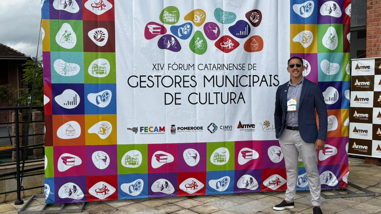 Nos dias 14 e 15 de abril de 2026, representantes de São Miguel do Oeste participaram do XIV Fórum Catarinense de Gestores Municipais de Cultura, realizado no Teatro Municipal de Pomerode. O evento reuniu cerca de 400 pessoas de mais de 200 municípios de Santa Catarina para discutir a gestão do setor.