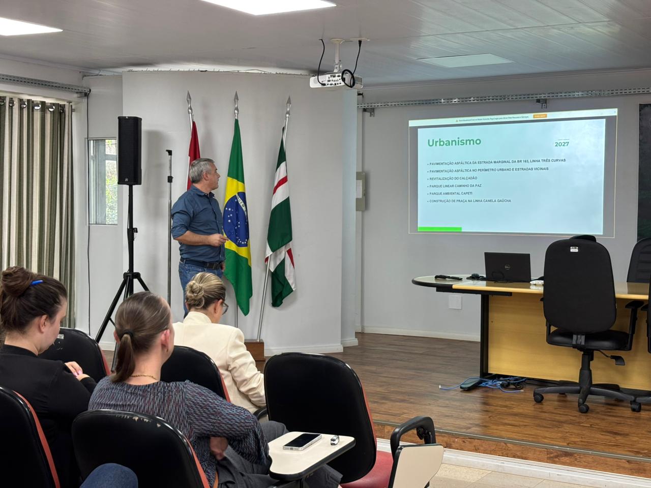 Durante a audiência, o prefeito Edenilson Zanardi apresentou as ações e projetos previstos para 2027, destacando as áreas que devem receber maior atenção da administração municipal.