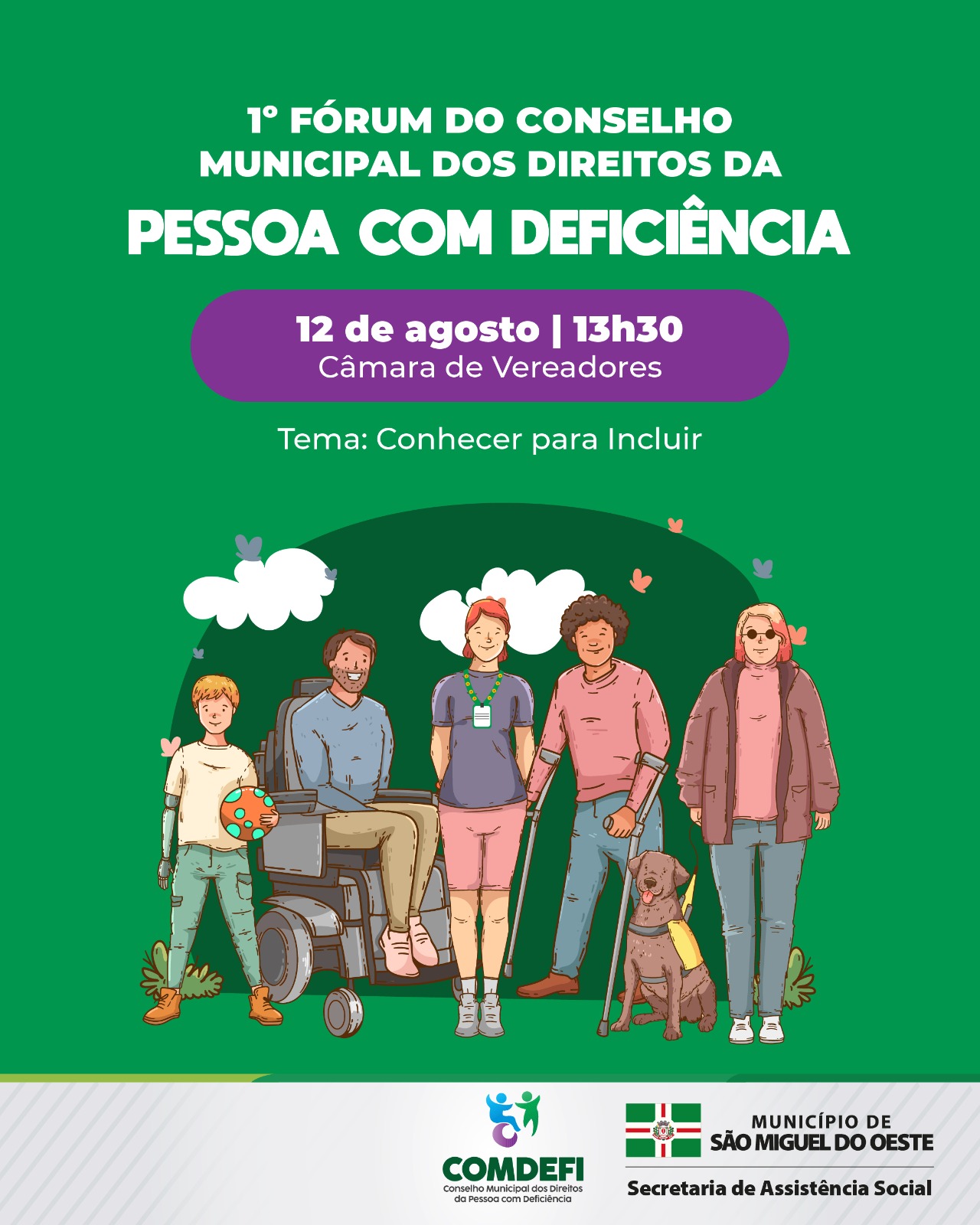 Será realizado, no dia 12 de agosto de 2025, às 13h30, na Câmara de Vereadores de São Miguel do Oeste, o 1º Fórum do Conselho Municipal dos Direitos da Pessoa com Deficiência.
